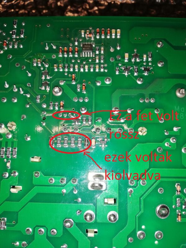 Sikerült megjavítani a tápot! A kiolvadt sönt ellenállások áramkörébe lévő FET volt szakadva (!), jóhogy nem jöttem rá kapásból, mivel zárlatos fetekhez vagyok szokva, még jó, hogy volt egy N-csatornás fet tesztelő áramköröm... A képet a jó panelről készítettem, mert a javított benne van a gépbe és már jópár hete működik jól. Köszi mindenkinek a segítséget. Üdv