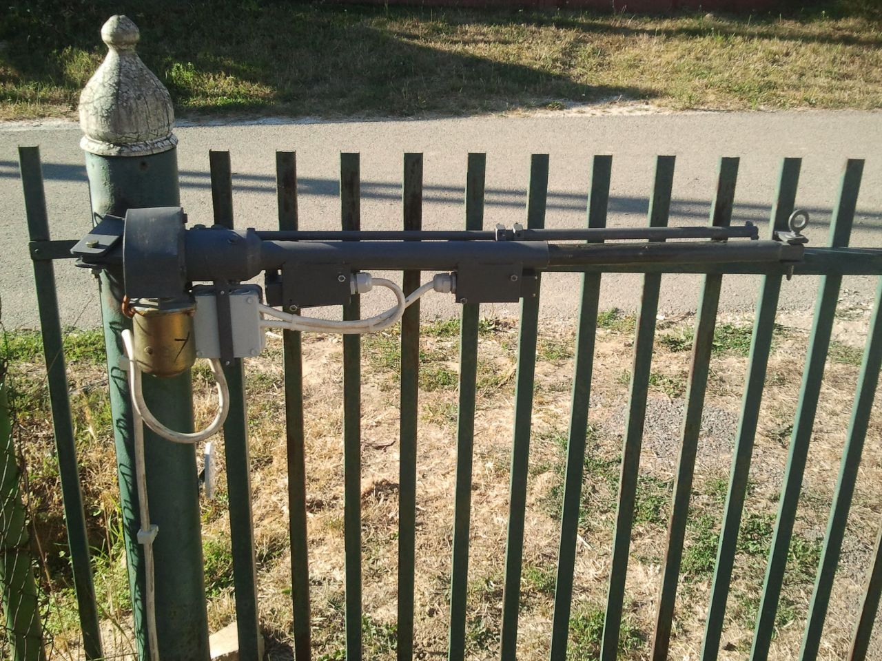 Az enyém teljesen saját gyártmány,már legalább 6 éve megy.Mellékelek egy képet.A kép jobb oldalán látsz egy rögzítőszeget,azt kihúzom és már nyílik is a kapu.