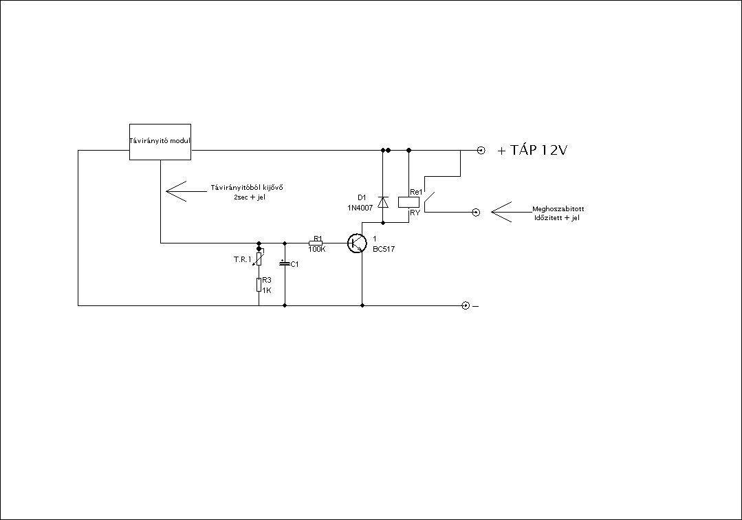 Bár pontosan én sem értem hogyan működik a nyitod, de ez nem is érdekes működik ez a lényeg. A távirányító jelét akarod időben meg hosszabbítani mert a 2 sec kevés ezt értem . Erre talán ez is megfelel. Ha pozitív jelet kap meghúzza a relét az időzítés idejét a pótméterrel állíthatod KB 2- 30 sec között. Ha kevés ez az idő is tegyél nagyobb elkót.
