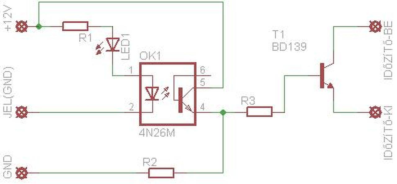 Szia! Értelem szerűen ellenálláson keresztül meghajtod az optocsati LED-jét, a tranzisztorral pedig meghajtasz egy nagyobb áramú tranzisztort, ami elbírja az időzítődet. Lerajzoltam neked mire is gondoltam.