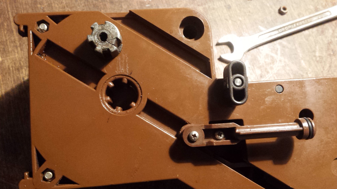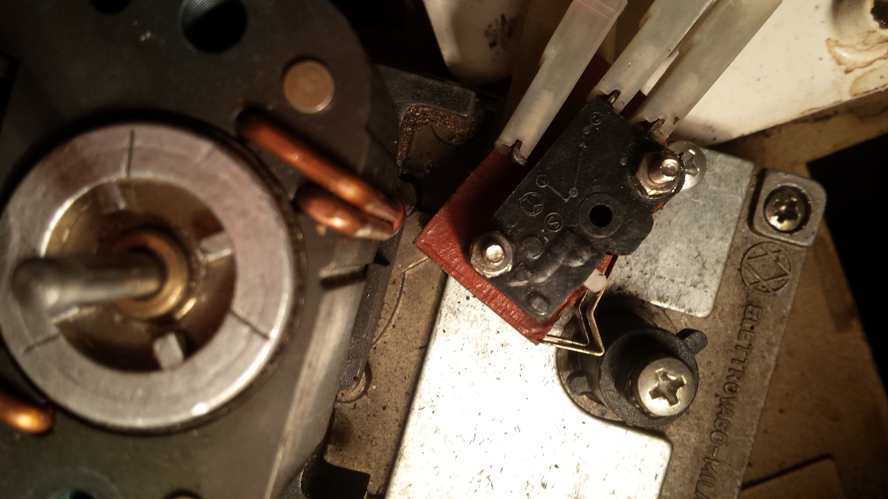 Igen nézegettem már,de ennél a tipusnál mint a képen is látszik csavarral van felfogatva a tengelyre.A következő képen a kétbütykös tengely ami kapcsolja a két mikrokapcsolót fel van lazulva igy került hozzám,na ez az amit nem tudom hogyan kell állnia semmi összejelölés nincs.