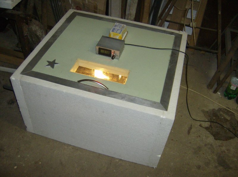 Én a vasaló híve lennék. Minden háztartásban van 2-3 félredobott vasaló. A hibái: vagy törött, vagy megégett a hőfokkapcsolója, vagy összeégett (karcos a talpa). Az esetek 90%-ában maga a fűtőbetét jó. Sorbakötve 2 talpat (1600 W/db) van egy 800 Wattos fűtőfelületünk. Egy alulapra felfogatva, nincs fény, nem túl magas a felületi sugárzás, és mivel negyed áram folyik rajta, sosem ég el. Megoldható az is, hogy 4 belső alu-oldalap 4 sobakötött talppal, egy egyenlete hőátadást biztosít ( 200 Watt teljesítménnyel) Elismerem, hogy nem egy profi kivitel, de háztáji célra megfelelő. Két talp estén, ha sok a 800 W akkor egy triakos fázishasítóval leszabályozható, vagy egy diódával csak "félhullámot" engedek át rajta. ( A gyári fényerőszabályozó 2.000 Ft, diőda min. 6A/400V)