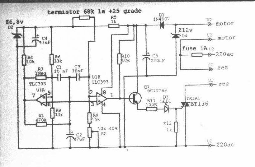 Anno én is kirajzoltam egy ilyen gyári kis keltető kapcsolását (mert hibás volt). Nagyon hasonló a megoldása, ez is a ventilátor motort használta a táp előtét ellenállása gyanánt. Egy gyári hőmérő és relatív páratartalom mérő kapcsolódott hozzá, innen táplálták azt is 1.5V-al.