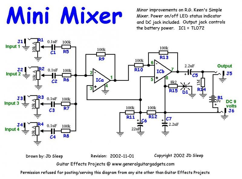 Sziasztok! Szükségem lenne egy 3 csatornás keverő kapcsolásra. 3 mono bemenet 1 mono kimenet. Tudna valaki segíteni egy rajzban esetleg ötletekben? Köszönöm előre is.