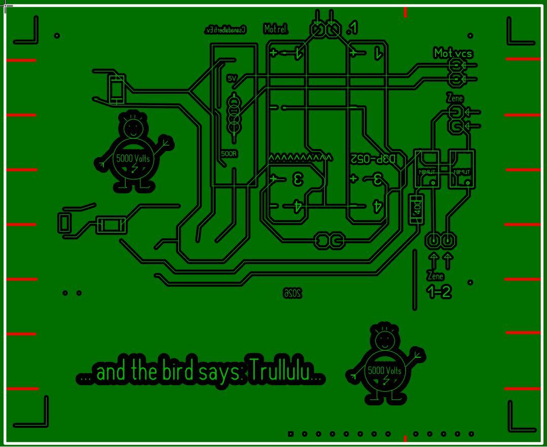 Érdekesség a "V" vágásra. A Cég akkor vágja el, ha bizonyos méreten felüli a vágás és nem különbözőek a tördelhető darabok, ekkor a kedvezményes ár van. Most egy munkámhoz kellenének kis oldallapok, két nyák lap közé, afféle 3 oldalt zárt dobozt alkotva. Az illendőség kedvéért feliratot raktam, mindkét oldalra és mivel 2 fajta kis holmihoz kellenek, egyik oldal az egyik feliratos, másik másik. Aztán kijött a pótdíj kérés, 23 valamennyi $. Megírtam, annyi pénz nincs is, a FED nem vállal több nyomtatást, csinálok másik tervet. Azon már nem voltak "V" vágások, csak jelek, hogy hol vágjam el karos lemezollóval. Most valami remegéseket érzek az Erőben, mert rákérdeztek, nem akartam-e vonalakat is rá, írtam persze, hogy nem. Ok, legyártják, értik a furfangot. Aztán megint automata levél, ugyan már, azt a bűvös pénzt küldjem el mégis. Most még nem tudom a tanakodásukban mire jutnak, de legfeljebb törlöm a tervet és egy forradalmi újítással küldök újat.. Itt a fekete festés után az egyik rajzolata nem is fog látszani, de az biztos, ezen csak egy terv van, feliratozva a másik oldalon, hogy be lehessen tanulni, többször egymás alatt. Nos, itt van a látható oldal és a másik oldal rejtjeles titkos tervezet. Ami nem fog látszani a festés alatt, de a tudat, hogy ott vannak, megnyugtat, illetve senkit se érdekel...