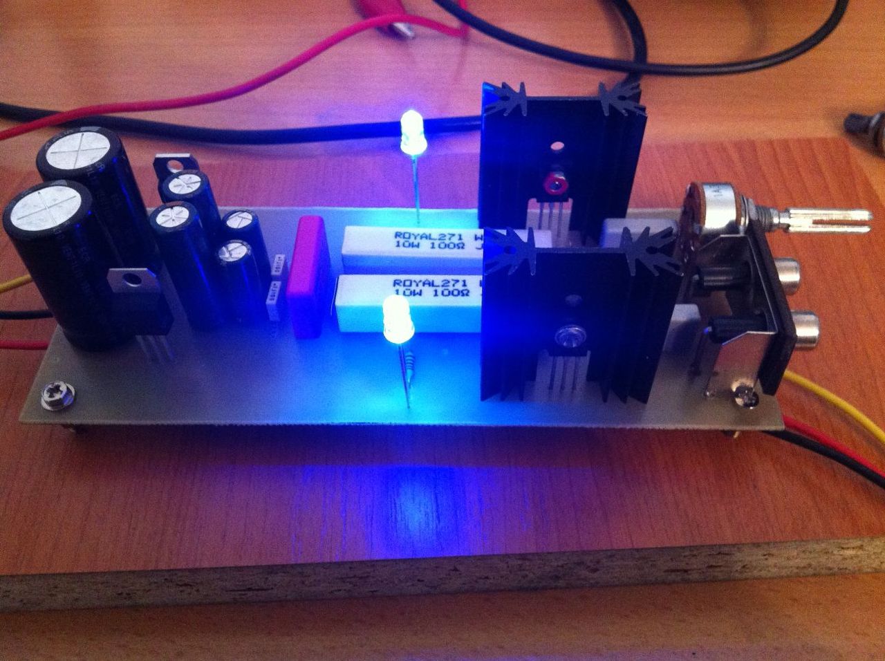 Én biztos, hogy raktam volna egy kis hűtőbordát minkét stabilizátor IC-re és az utánuk következő 2200 µF -os kondikat pedig bele sem tettem volna. A stabilizátor IC-k minden bizonnyal legalább 1 A-t tudnak szolgáltatni, a kimeneten lévő kondenzátorok miatt viszont bekapcsoláskor letilthatnak a nagy indulóáram miatt.