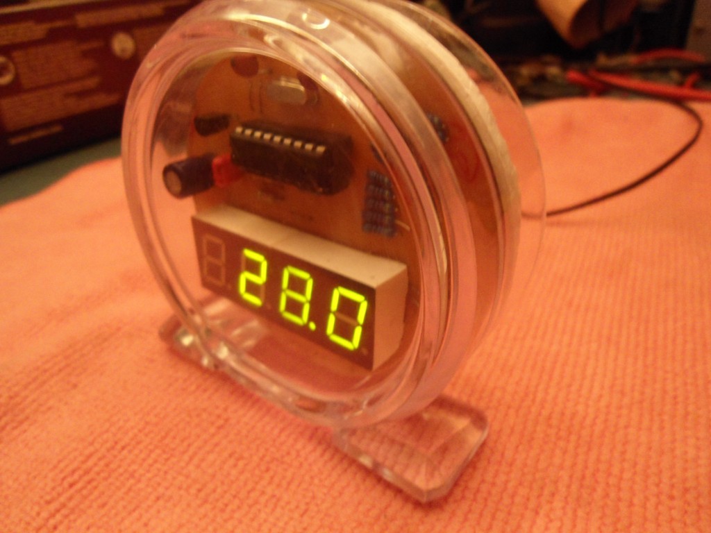 Az érzékelő hátul van, jobbra fent a PIC mellett látszik 3 furat. Na ott van hátul. Én inkább arra gondolok, hogy a PIC-nek 30pf-os kondi helyett 22pf-es kondit raktam. Hétfőn megyek Szegedre majd veszek és meglátjuk. De azért köszi! Persze 0.5 fok eltérést valahogy kibírok a hétvégén nagy duzzogva