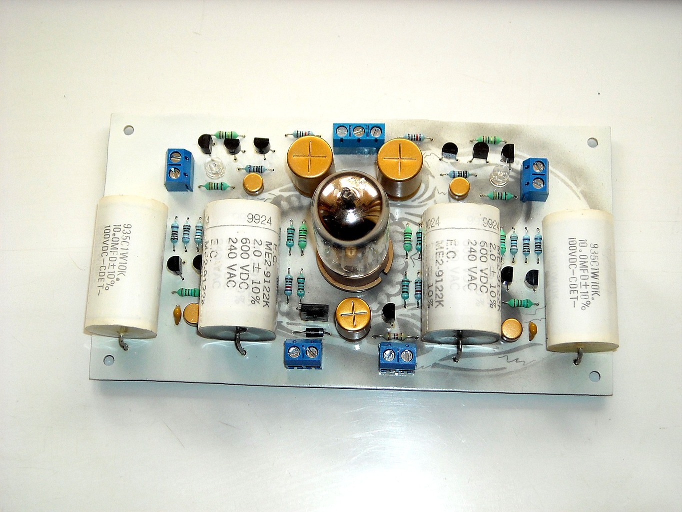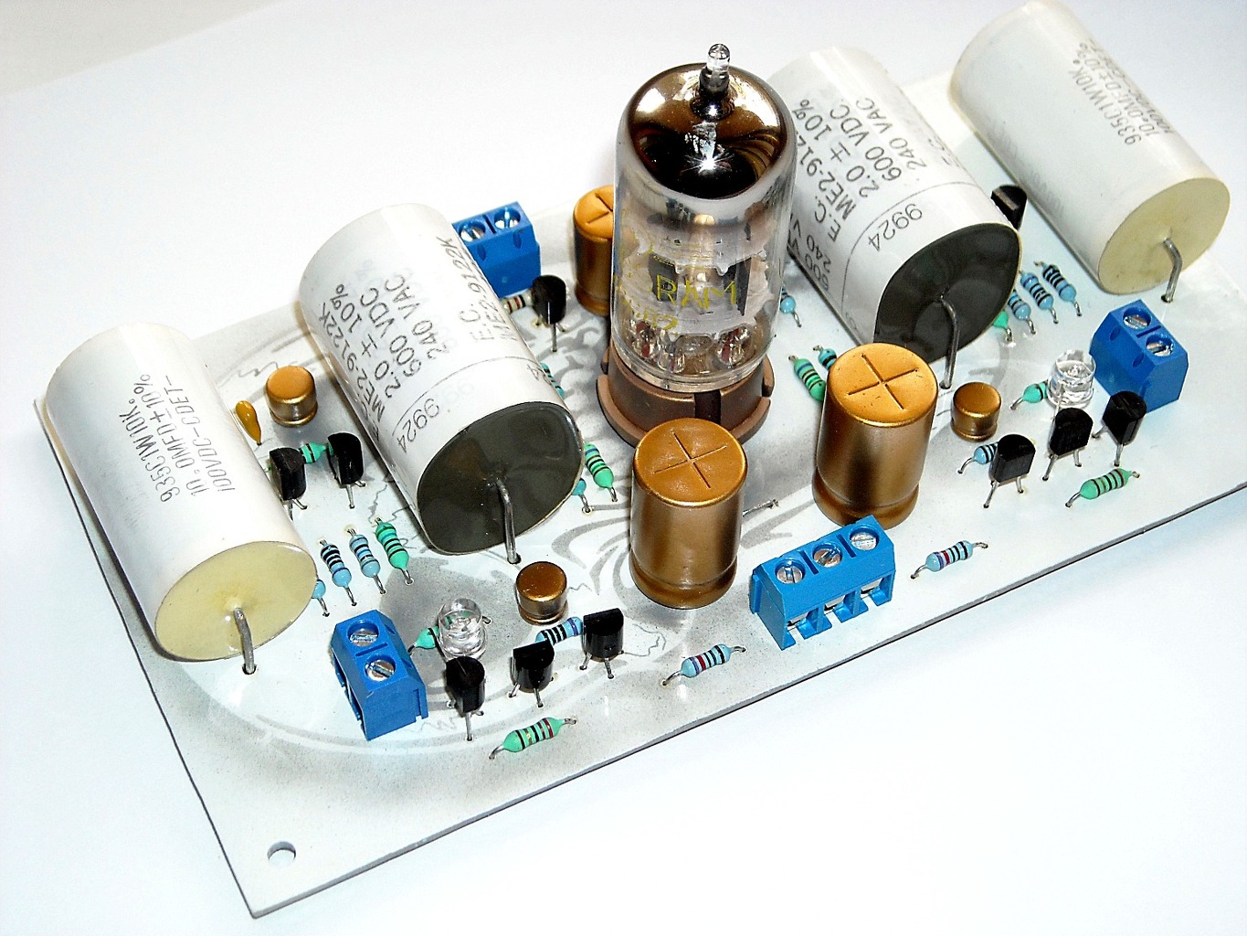 Ne erre mondom azt, hogy ez az amikor már az elektronika keveredik a művészettel. Amikor színben, és minden másban is illenek egymáshoz az alkatrészek. Az arany színű kondik, kicsit olyan punk-os beütést adnak, de ez meg remekül megy a csőhöz ahogy a régebbi vágású olajkondik is. Pazar!