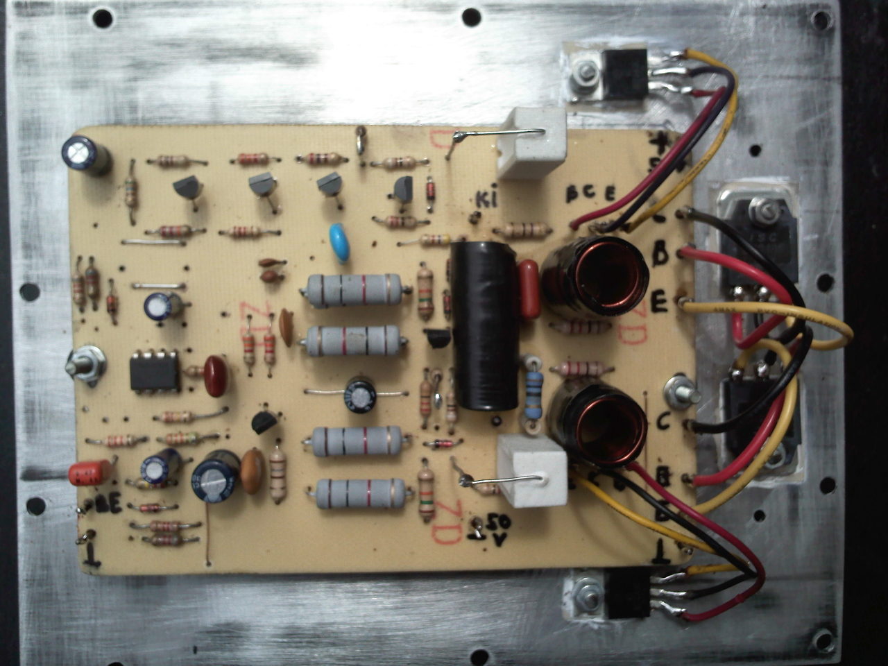 Ha megfigyeled az aktivom hatuljat, ugyanaz a borda. Akkor meg csak 3-3 db tranyo volt felteve, meg jott ra 1-1. Nekem egy hid dolgozik a kontrollba, +/-40V rol. Vegfokonkent van 4db tranzisztor, 2 vegfok van ami hidalva van.