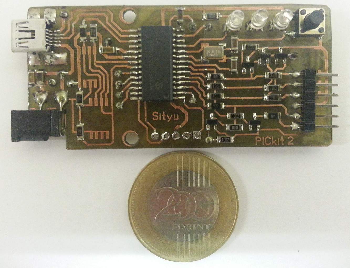 Unalom űzésem legújabb eredménye egy PICkit 2. Gyakorlatilag minden funkcióra képes lesz és ki van kiegészítve egy 1A-es segéd táppal szükség esetére, de nélküle is tökéletesen működik. Sajnos EEPROM híján még a "programer-to-go" funkció nem üzemel, de ami késik az nem múlik.