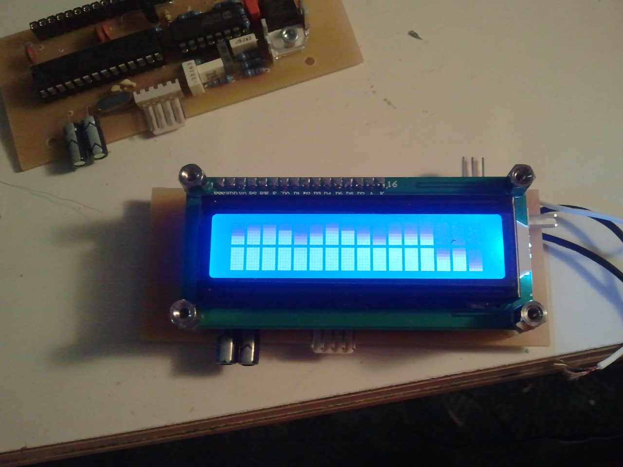 A 2*16 karakteres program hibás, ki van kommentelve belőle az kijelzőt inicializáló kódrészlet, azzal együtt tessék majd újrafordítani.