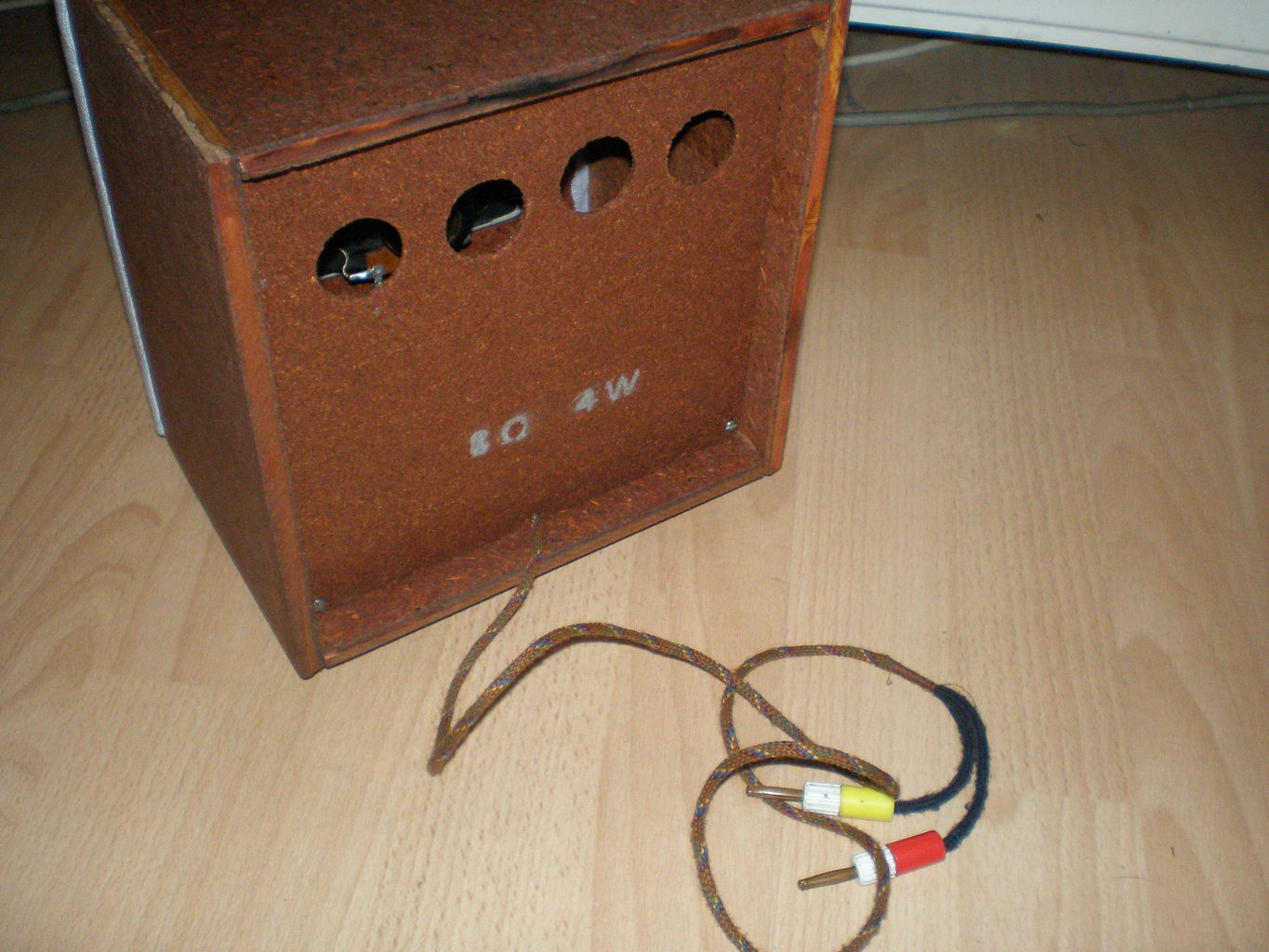 Sziasztok, elkészültem a rádiós kísérletekhez a hangszóróval. Nem a világ szépe, de nekem tetszik. Direkt ilyen régies hatást akartam kelteni. A kábel bevonata cipőfűző, az ötlet Bari fórom társunk fa egere adta.