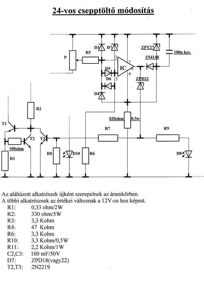 A melékelt képek alapján készítettem, igaz már régebben, saját célra és barátaimnak ebből a csepptöltőből pár darabot, gondoltam megosztom. Van egy 24Vos módosítás is, amit magától a szerzőtől kaptam. Bizonyos alkatrészek más, nagyobb teljesítményűek. Nekünk nagyon bevált. A hozzászólás módosítva: Feb 8, 2014