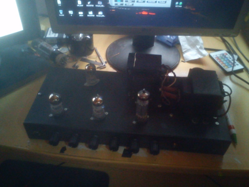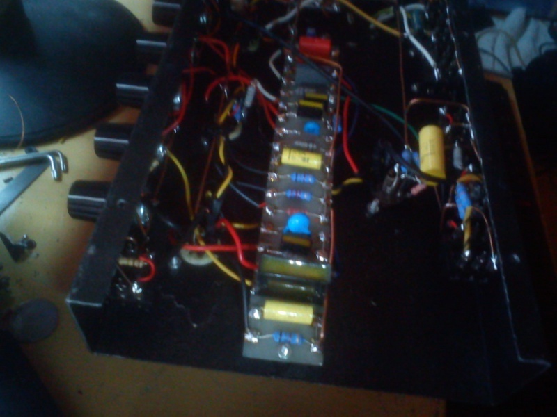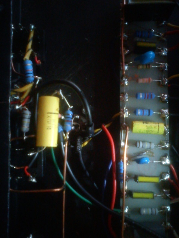 Készítettem egy full csöves gitárerősítőt, ezt szeretném megmutatni Nektek. Ugyan még nincs teljesen kész, a feliratozás, a keret és az elejéről a rács még hiányzik. Ha az is meglesz akkor majd teszek fel képet arról is ![]() A kimenőt és a hálózatit is én tekertem. Van benne effekt loop, és 4-8-16Ohm-os hangfalat lehet rákötni. Én nagyon megvagyok vele elégedve. Egyébként ez egy Soldano Atomic előfok, megfejelve egy ENGL 625-ös erősítő loopjával. A végcső EL84, de ki lesz cserélve 6P14P-re. Az előfok csövek 6N2P-k. Igazi high-gain szerkezet, nagyon tiszta hangot nem is lehet kicsalni belőle, de nem is arra készült A hozzászólás módosítva: Feb 11, 2014