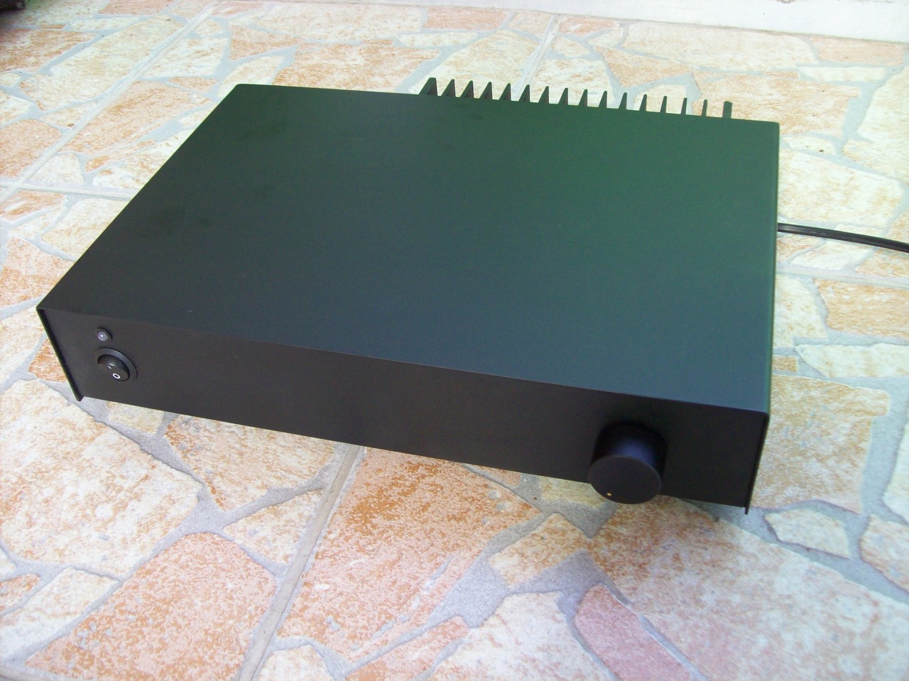 A doboz alacsonyabb lett. A hűtőborda már egy darabból van. Jobb fajta csíptetős aljzat került rá az olcsó banán helyett. Fém hangerő tekerő és szebb kapcsoló is.