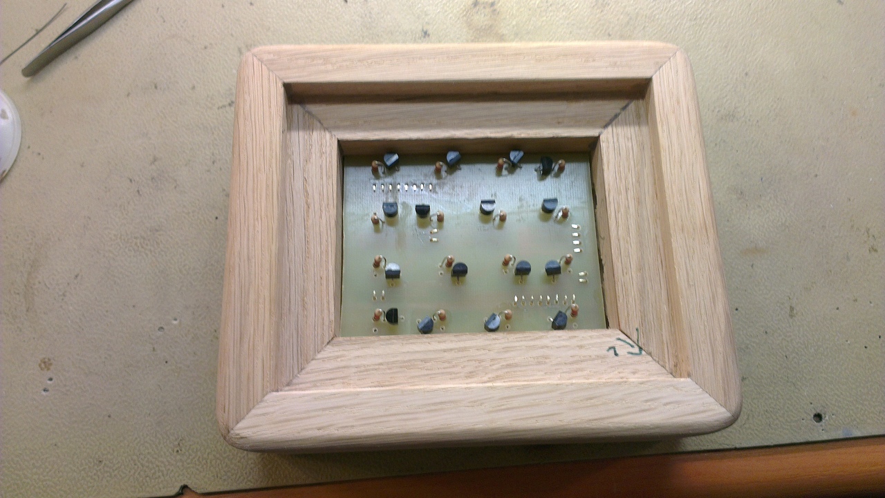 Modulos felépítésű így szét lehet szedni a vezérlő és a meghajtást. Tölgyfa dobozt kapott. Ezt és a Bináris órámat mely hasonló keretet kapott karácsonyra készítettem. Remélem örülnek majd a kézzel készített kis ajándéknak. Mivel ez volt eddig az első LED kocka projektem, így nem variáltam nagyon túl. P16F684-es szolgálja ki a vezérlést, 2db 74HC595 Shift Regiszter hajtja meg a LED-ek előtti BC852-es tranzisztorokat, és 4db BC337 tranzisztor kapcsolgatja a negatív lábakat amelyek a sorban vannak. Ezen kívűl még került bele egy 7805-ös stabilizátor, 1db nyomógomb mellyel a programokat lehet léptetni és ennyi.. A programja pont annyira egyszerű mint maga a kapcsolás. Egy kis 1 makro és egy kis rutin szolgálja a kis a shiftregisztereknek küldött adatokat. Az adatok minden esetben véletlenszerű, így ad mindig újabb megvilágítást. A program léptetésnél az időzítést és sorrendet változtatom... Egy kis videó is a működéséről: Bővebben: Link Pár képet is csatoltam...