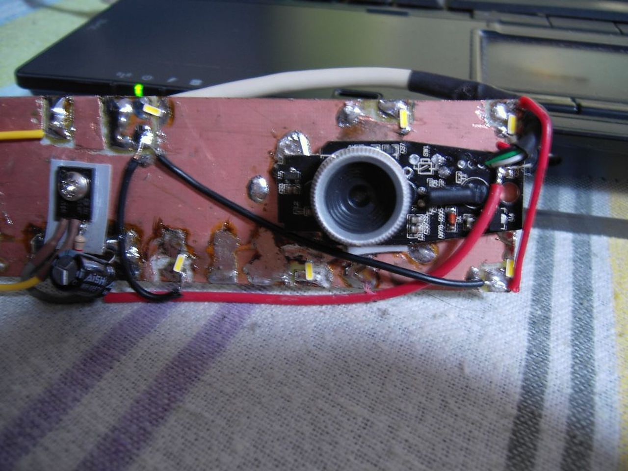 ![]() Persze gányolmány, de ilyen eredményre nem számítottam, szóval fogok venni mégegyet (ha kapni) és csinálok rendes állványt, dobozt neki, megérdemli. A ledekkel el kellett szórakozzak, de végülis kiderült, hogy akkor jó, ha annyira messze vannak, hogy nem látszik a fényük (nem tükröződnek) a nyákon és a fényerőszabályzás is lényeges, mert mindíg a nyák színéhez kell álítani, de nagyon hasznos tud lenni egy ilyen kamera.