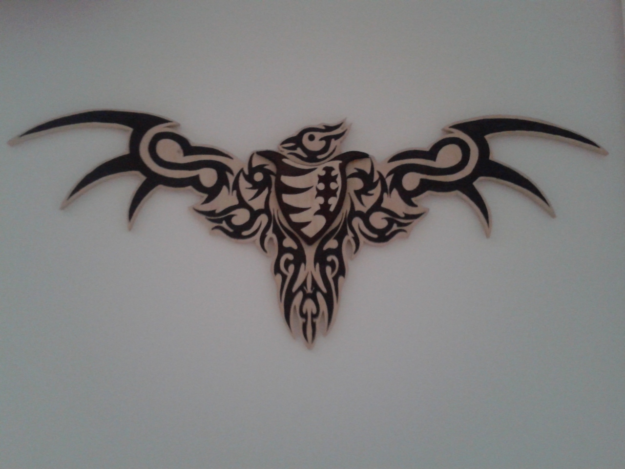 Üdv mindenkinek! Régebben készítettem egy turul faldíszt. Fesztávolsága ~70 cm. A hétvégén kiegészítettem pár LED-del, amik egy telefonakkumulátorról kapják a tápot. Idővel talán kerül bele egy alkonykapcsoló is.