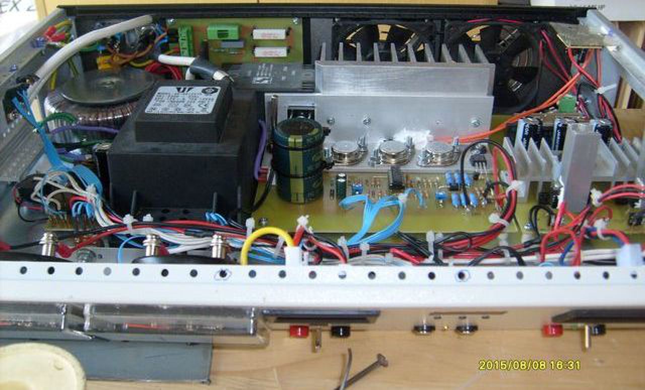 Egy labortáppal jelentkeznék. Maga a labortáp az ALKOTÓ féle panelre épült, a toroid lágyindító pedig SKORI rajza alapján készült. A többi az én igényeimnek megfelelően lett kialakítva ( a régi lassan 30 éves tápom alapján). A labortáp rendelkezik 2 analóg és egy digitális (A+V) műszerrel, van egy 5V 3A állandó táp, egy 12V 1,5A állandó táp, egy 12V-os táp a ventillátoroknak és a digit műszereknek is külön táp van kialakítva. A műszerek mellett van egy folytonosságvizsgáló (hang-fény) és egy digit hőmérő is. Az egyik ventillátor szabályzott, állandóan működik és a labortáp hőmérsékletétől függően változik a sebessége, a másik ventillátor a digit hőmérő által figyelt belső hőmérséklet alapján kapcsol be vagy ki. További szép estét mindenkinek! |
