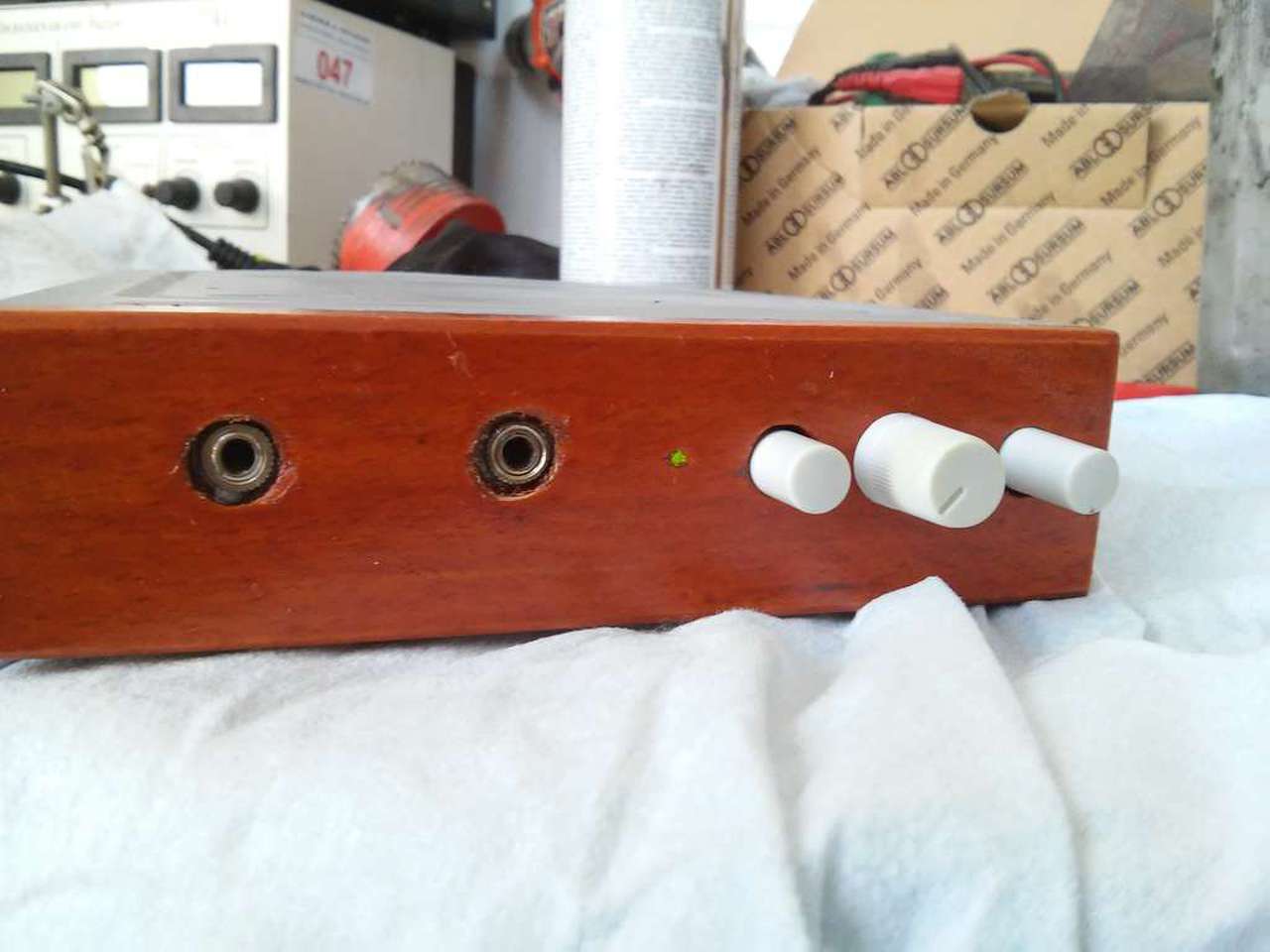 A vége már nem fért rá. Az előlappal szenvedtem nagyon sokat, legalább hat példányban készült, mert mindig történt vele valami. Az eredmény az, hogy jó hangos, tiszta. Eltekintve attól hogy a trafó az bizony zúg. Nem csak a fülesben, de a doboz is remeg tőle. Erre számítottam, úgyhogy csere lesz kapcsolóüzemű tápra. Szerencsére nem hangos, úgyhogy megvárja a következő szabit