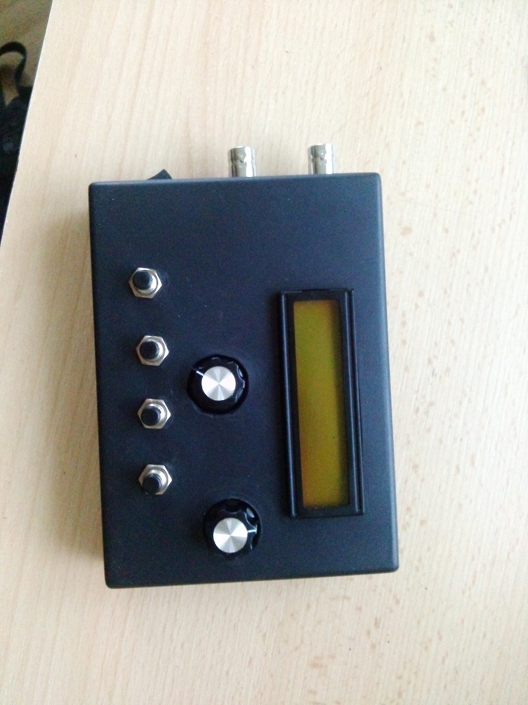 Üdv. Én is bejelentkezek egy "kész" funkció generátorral. Az alap CD4049-es áramkört tartalmazza,ami 1-50-100Khz-ig képes frekvencia generálására,szinusz,fűrész és négyszög jelalakban. A műszer tartalmaz egy belső "hallgató" egységet is,mely külön bekapcsolható. Maga a gép "fapados" próbán elsőre működött,rögtön elnyerte a tetszésemet.