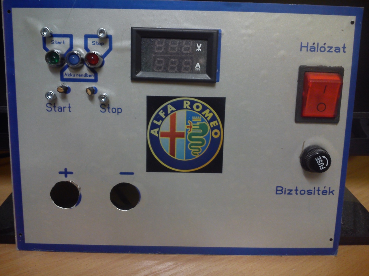 Hosszú esték hobbizása után ma végre megszületett a legújabb akksitöltőm előlapja. Mivel vizesen tettem fel a matricát és nem vágtam ki rendesen a fóliát a led foglalatok környékén ezért ott felhólyagzott. Még úgy is szét kell szedjem a huzalozáshoz ezt a hibáját javítom, de nem tudtam megállni, hogy ne tegyem bele az alkatrészeket.