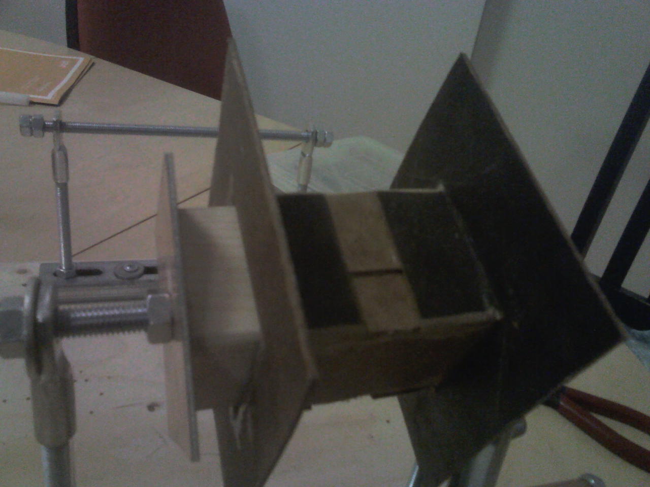 Ez merevségre sokkal jobb. Remek példája a jó amatőr megközelítésnek. Ez a tölgyfa keresztmetszet aligha fog eltörni az említett huzaltól. A satuba való megfogás szintén kellően stabil helyben tartást ígér. A szerkezetnek a tengelye a leggyengébb pontja, illetve a "csapágyazás" önpusztító.
