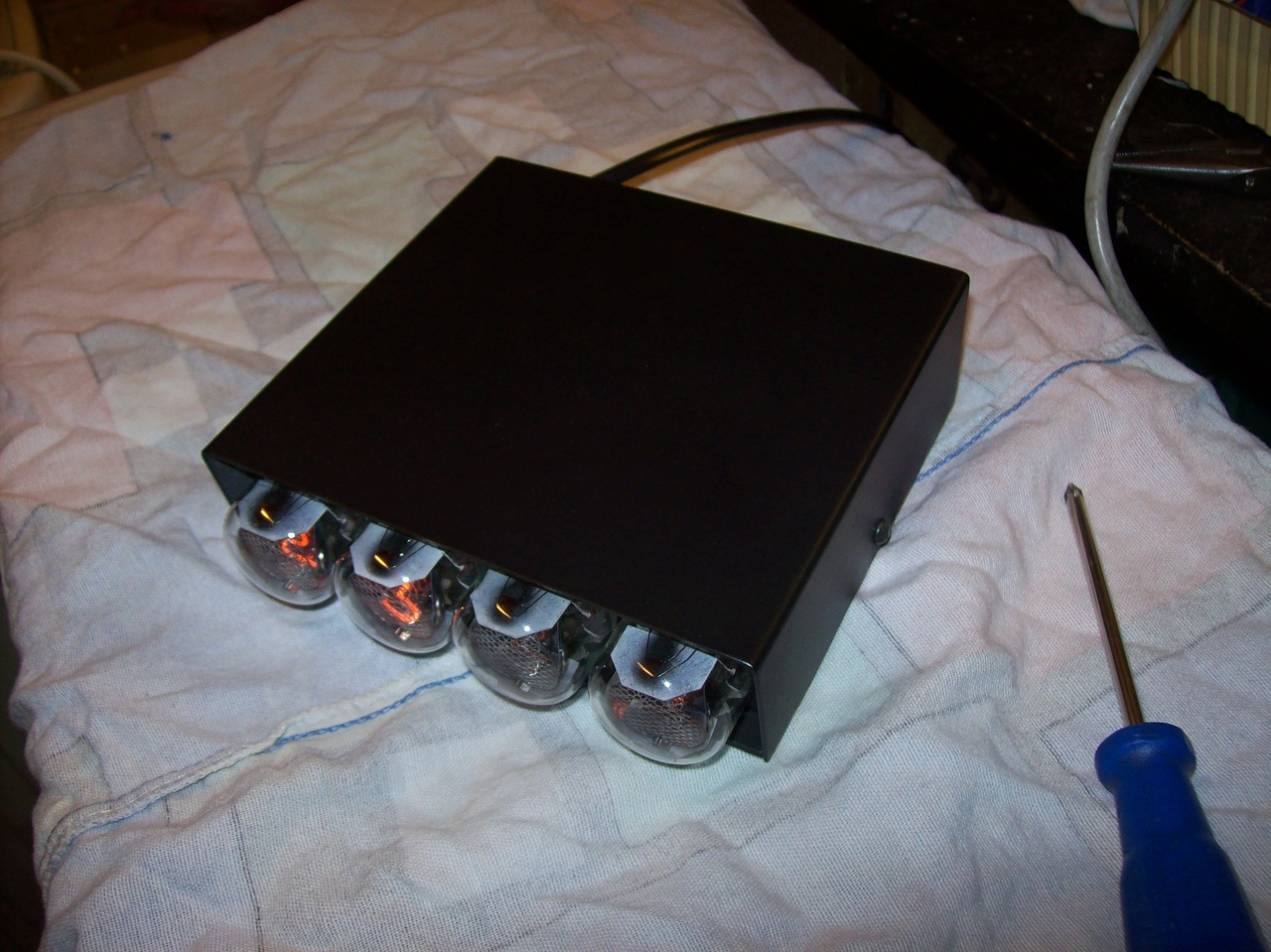 Szép kívül-belül, és ha jól látom a dobozolás is saját-kezű. Amit én másképp csináltam volna az, hogy a nixie-ket besüllyesztettem volna, részben a védelem miatt, meg nekem úgy valahogy jobban tetszene. Persze ízlések és pofonok... Jár a mancs érte!