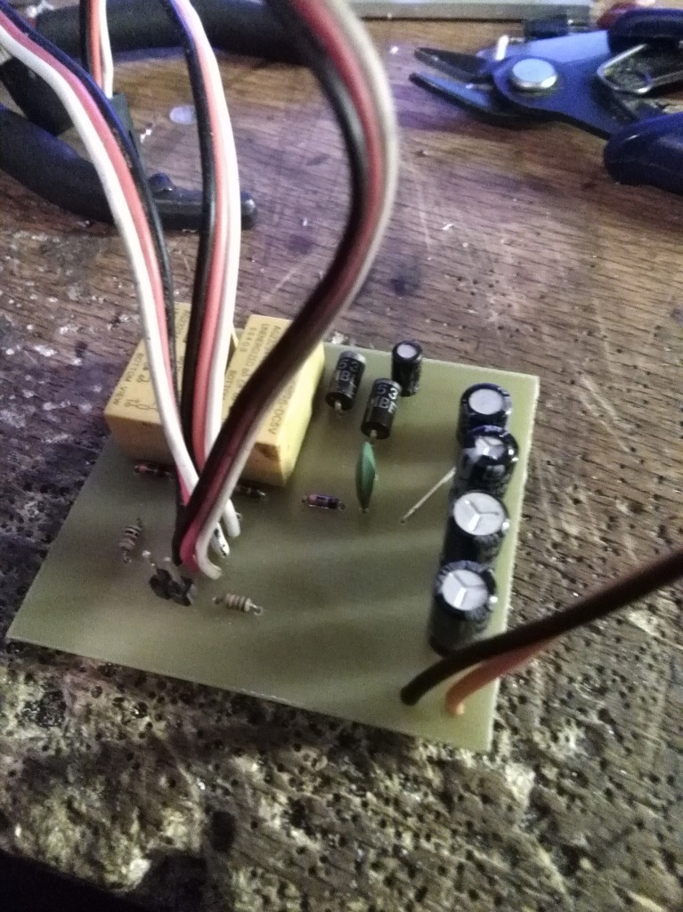 Sziasztok! Elkészültem az egyik modellembe való egyedi szabályzóval. Egy hernyótalpas szovjet tüzérségi vontatóról van szó, készen nem találtam olyan szabályzót, amivel élethűen lehetne irányítani a járművet, illetve eléggé kevés hely van a modellben, mert 1/14-es méretarányban készül. A lelke a cuccnak egy 16F884-es PIC, ez dekódolja a vevőből jövő 3 csatorna jeleit, és ezek alapján vezérli a 2 villanymotort, a hangmodult és a világítást. A motorok forgásirányváltását relékre bíztam, a modell kis méretéből adódóan kicsi motorok is vannak benne, terhelve sem vesznek fel 1,5-2A-nál többet, a 2db relével egyszerűbb volt megoldani a dolgot, mint 2db H hidat vezérelni. A FET-ek egy rossz videókártyáról származnak, elvileg 50A-t tudnak, szóval szerintem hűtés nélkül is bírni fogják. Sajnos belecsúszott egy hiba a gyártásba, 2 verzió készült a paneltervből, és naná, hogy a rosszat sikerült kinyomtatnom, és csak beültetés közben vettem észre, ezért van a bal felső sarokban az átkötéshalmaz.