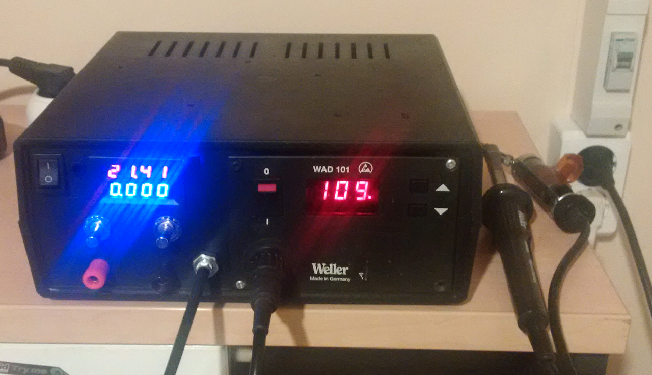 Mivel "baráti" áron szereztem a WAD101-et, nem sajnáltam szétbombázni és egy korábbról maradt dobozba beletenni. Hely volt benne bőséggel és mivel volt a fiókban egy-két step-down konverter meg kijelző hozzá így már érlelődött a gondolat, hogy kár lenne ekkora dobozt és egy kiváló trafót csak a kiforrasztóhoz használni ami csak alkalmanként van üzemben. Ebből született az "öszvér" ![]() 0-30V, 3A tápegység, kiforrasztó, forrasztó. Jelen formájában üzemel (az elrendezés és a vezetékezés nem a legszebb), de még egy módosítás vissza van rajta, ha majd sikerül egy HAP-1-et szereznem akkor a vákuumszivattyú kap egy pwm vezérlést és akkor már mehet a hőlégfúvó is.