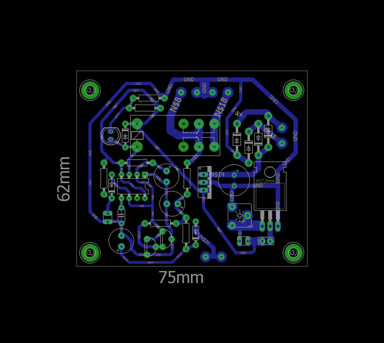 Szép munka, nagyon hasznos eszközt epítettél! 5V 3A kimenőt ne nagyon használj (se 3A-t rövidzárban), mert elpukkan a nagy tranzisztorod... 75-90W-ot kellene eldisszipálnia egymaga.