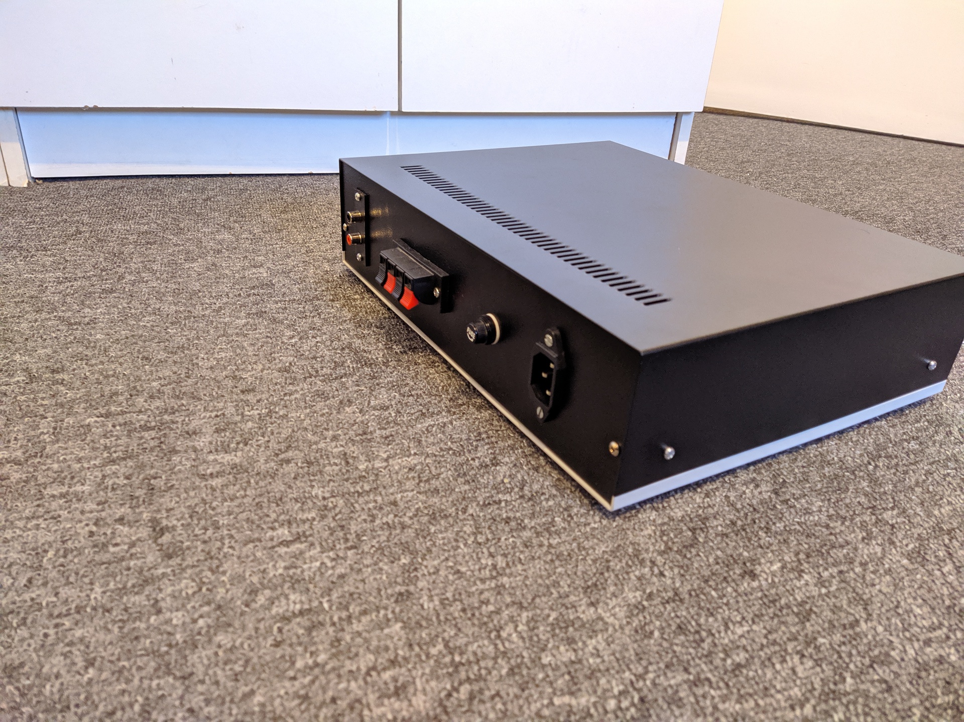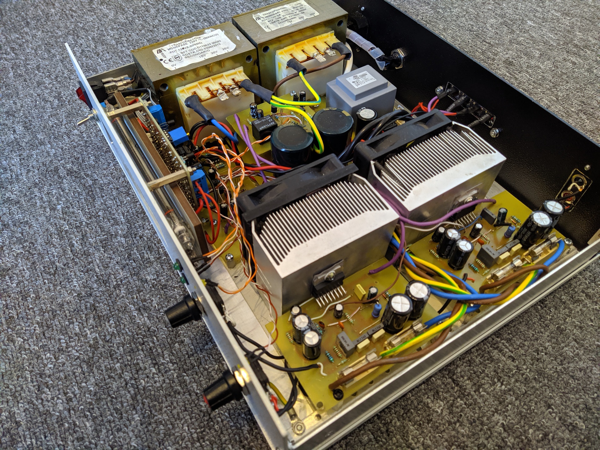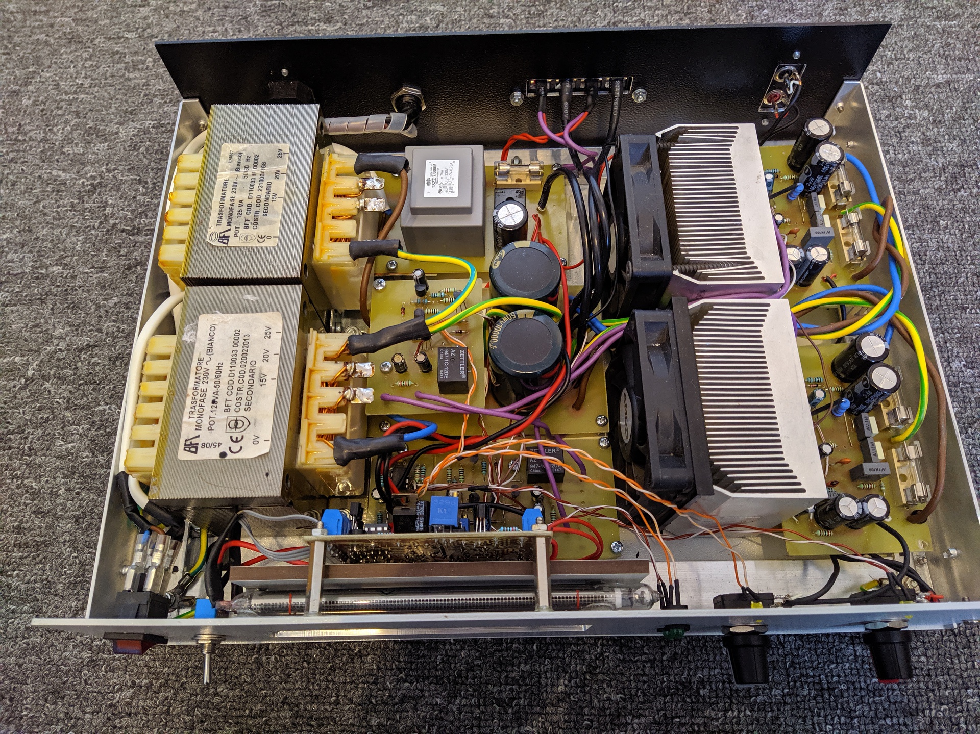 Készen lettem a 2x100W-os erősítőmmel. 2db TDA 7293 üzemel benne. Itt a cikkek közt található hangszóróvédelem és plazmacsöves kivezérlésjelző épült hozzá. Van benne még Clip jelző áramkör,segéd trafó, illetve az erősítők trafójai, minden egyébbel. Köszönöm szépen mindenkinek a segítségét aki segített nekem. Legfőképpen reloop kollégáét. Tudom hogy nem tökéletes, lehetne rajta még mit csiszolgatni, de én örülök hogy egy ilyet sikerült alkotnom.