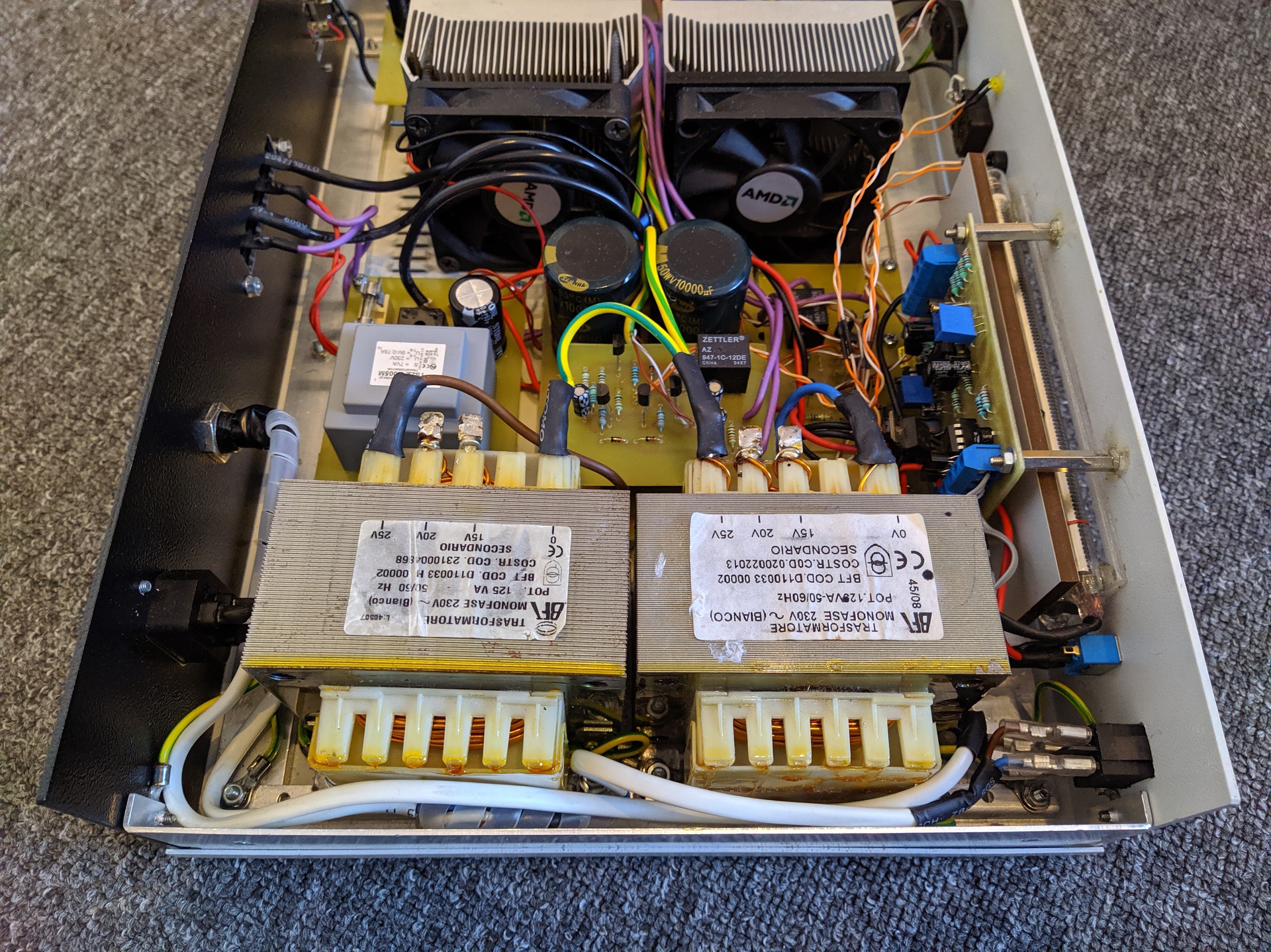 Nem tudom mennyire melegszik, meg mennyire, mennyit fogod hajtani, meg hol lesz az üzemi helye, mert csak azután aggódnék, hogy elégséges e az átfolyó légáramlás a dobozon. Jól néznek ki a trafóid is, mert nem csak toroidból áll a világ.