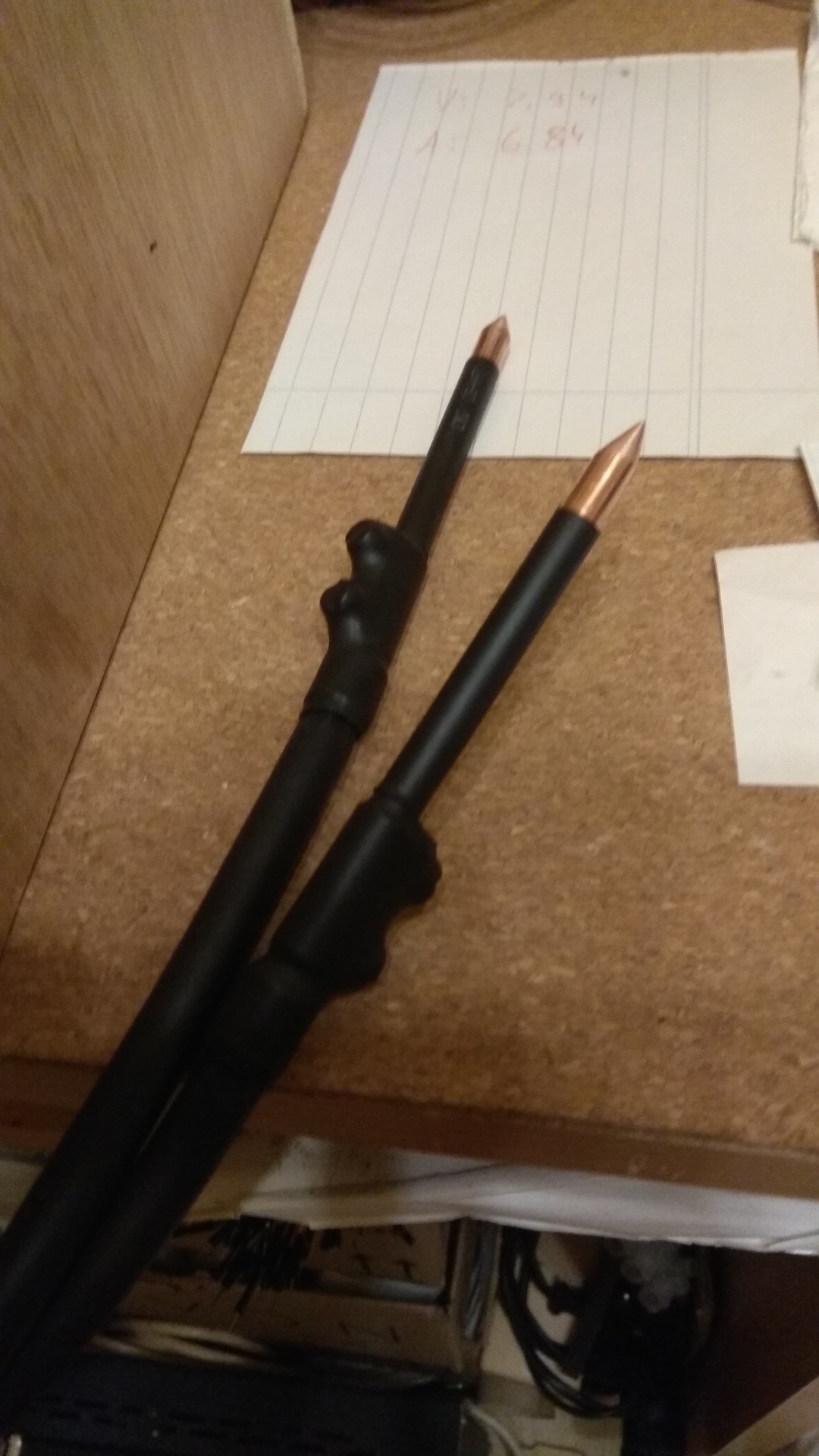 A doboz az itthon talált "hulladék" rétegelt lemezből készült. Az alkatrészek azok újak. Üresjáratban 2.94V mérhető a csúcsokon. Rövidzárban 689A-t mértem. Tudom, hogy lehetne vastagabb is a kábel (16mm), de így is majdnem átégette a próbaként használt lemezt.