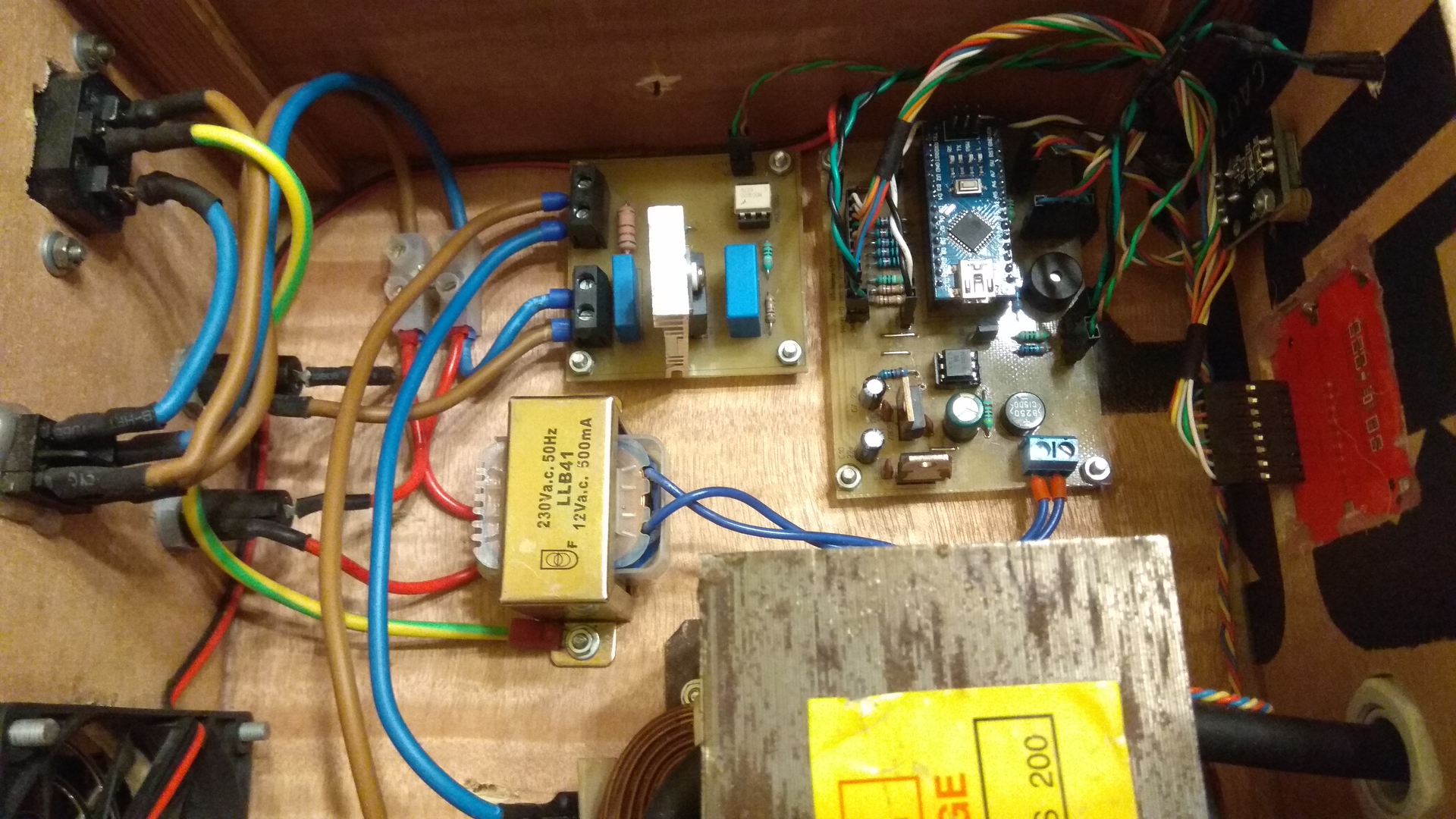 Zoli bácsinak sajnos igaza van. Ez gányolás. Még egy papír dobozban is lehet normális, átgondolt elrendezést és átgondolt vezetékezést kialakítani. Egy elemes játék esetén, nem származik belőle nagy gond, nem túl szép, de teszi a dolgát, viszont hálózati feszültségről működő készülék esetén komolyabb problémák lehetnek a nem megfelelő kivitelezésből.