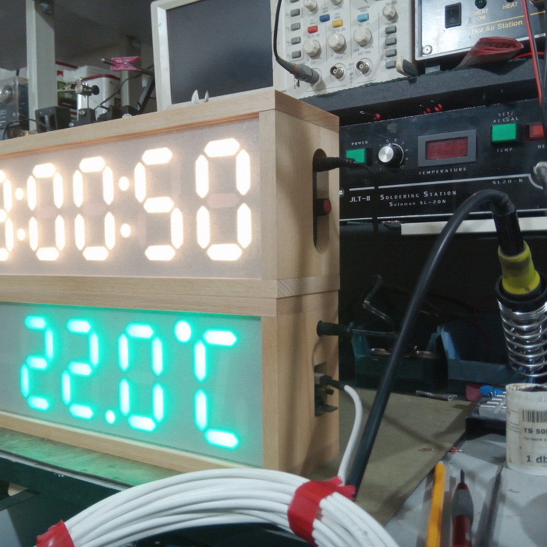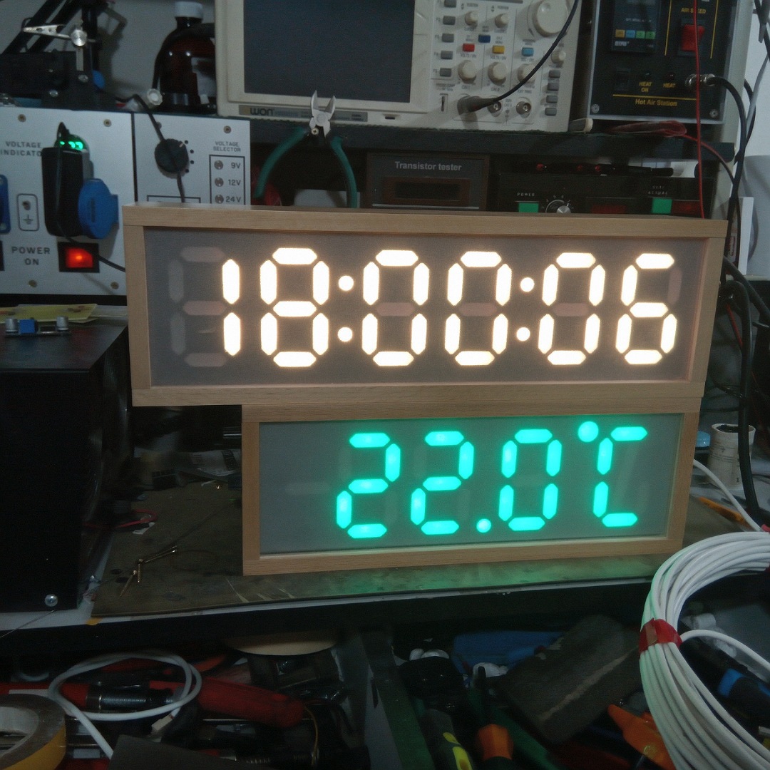 Építettem egy saját kijelzőt, habosított PVC-ből, majd összeeaktam belőle egy digitális órát, és egy hőmérőt. WS2812B ledek vannak benne, így a szín is állítható. No és a fényerő. Külön köszönet Gautier Péternek a program létrehozásáért.