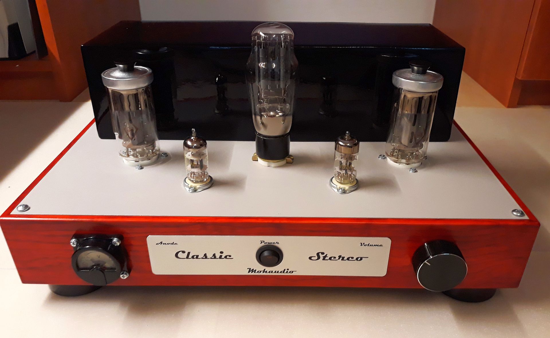 Elkészültem egy GU50SE erősítővel. Csöves egyenirányítás, majd utána szimmetrikus CLC tápszűrés, külön-külön a két elő- és végfoknak. Kombinált katódbias és negatív előfeszültség állítja be a GU50-ek munkapontját. Pentódás bekötéssel 2x8W kimenőteljesítmény jön ki belőle 300V-os tápfeszültség mellett. A kis műszer az elején az anódfeszültséget jelzi vissza. Az elő- és hátlap Zoli_bácsi fórumtársunk munkája, az előlap feliratozását is ő csinálta, a hátlapot egy barátom lézerrel gravírozta. A kapcsolás CHZ fórumtársunkat dícséri, akinek külön köszönet a sok segítségért, valamint TAttila77-nek is köszönöm a segítségét. Néhány kép a végeredményről. Az építés fázisairól még több kép itt:Bővebben: Link Köszönöm, hogy megnéztétek.