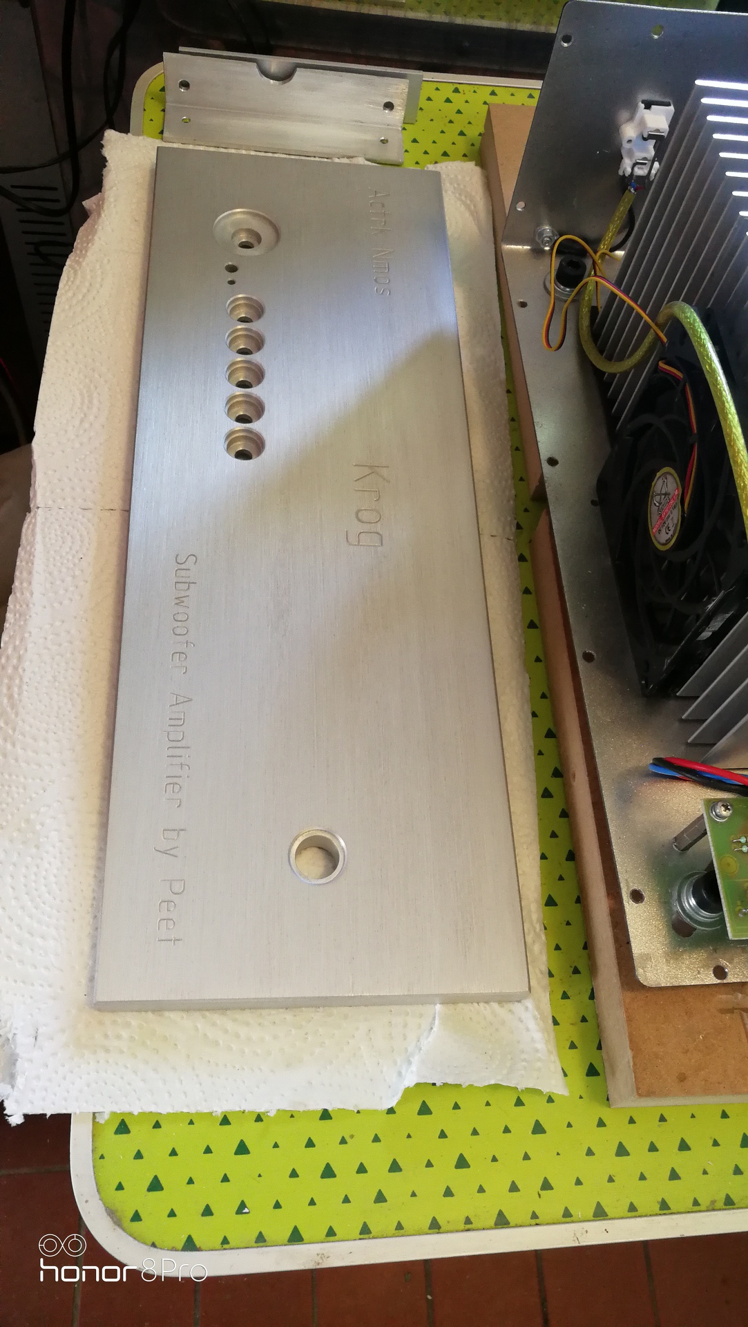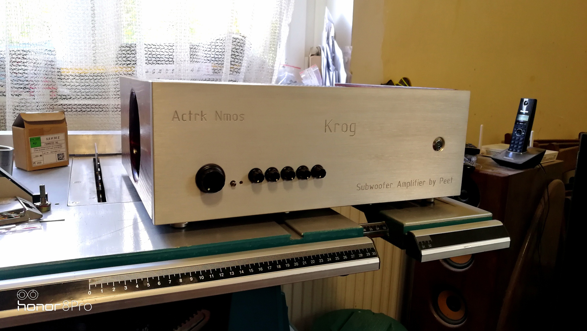Elkészült az új sub erősítőm. Régen is ezt a típust használtam, de most teljesen újat építettem, csak a trafó a regi benne. Actrk Nmos 350, de lazán adja a 400W-ot 4 ohm-on. Teljesen csendes, semmilyen zaja-gerjedése nincs, az rca csatlakozó le lett földelve, és a fémházas potméterek is kontaktban vannak a tömör aluminium előlappal. Minden más alkatrész el van szigetelve a háztól, még a nagy hűtőborda is.