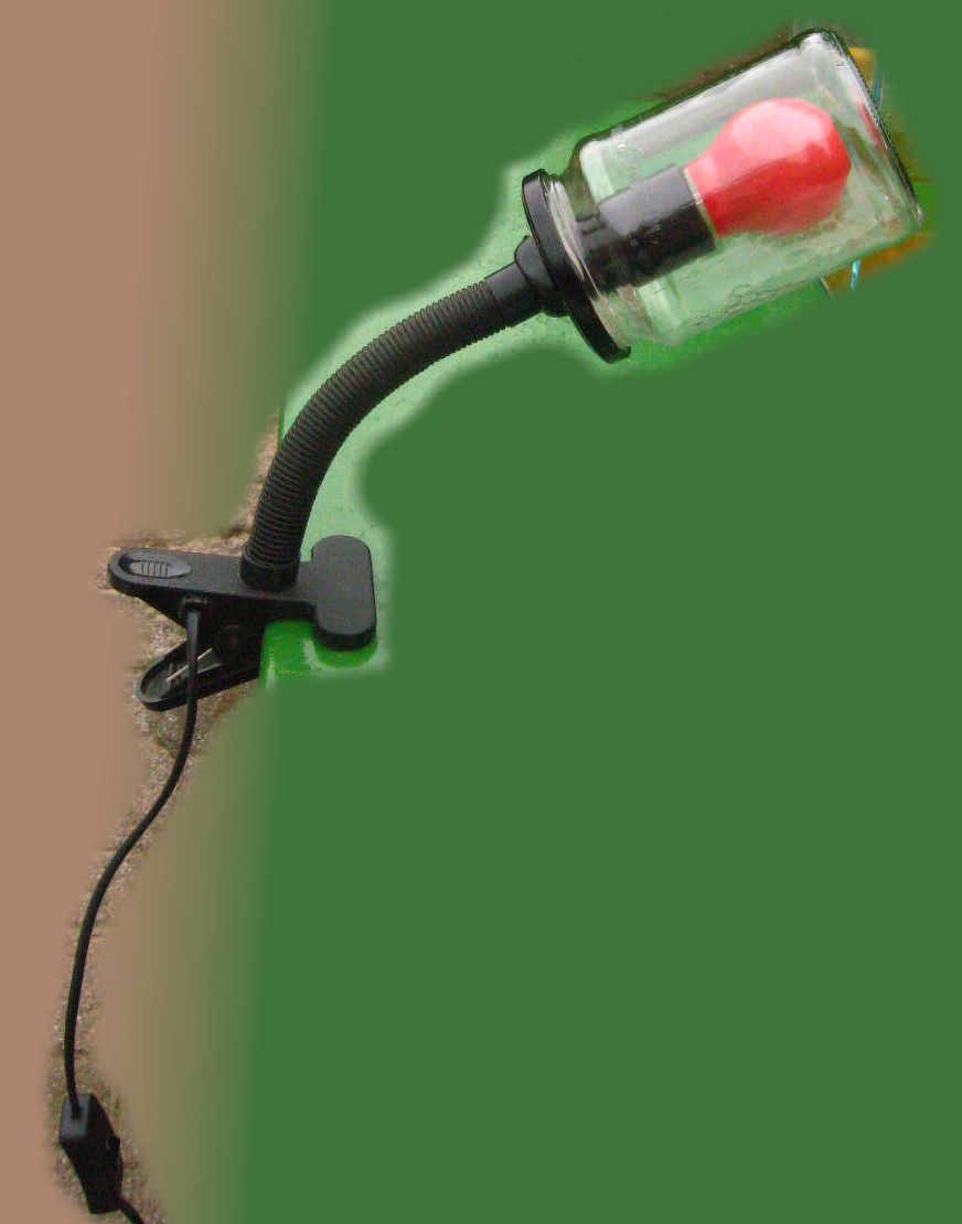Befőttesüveg lámpa csíptetős alapra építve.