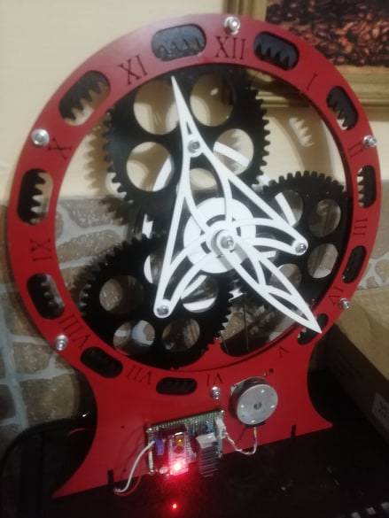 Na jó, ha már benne vagyok, akkor még egy óra. Ez nem most készült kb. fél éve már működik szépen. Természetesen ezt is lézerrel vágtam ki. Az anyag vastagsága a fogaskerekeknek 3mm-es lemez a többi alkatrész az 1,5 és 2mm. Itt is egy Arduino Nano-t használtam és egy léptető motort. Az elektronikáról és a motorról a fotó miatt levettem a burkolatot. Amúgy a burkolat egy szálra húzott Ko 1mm-es lemezből készült