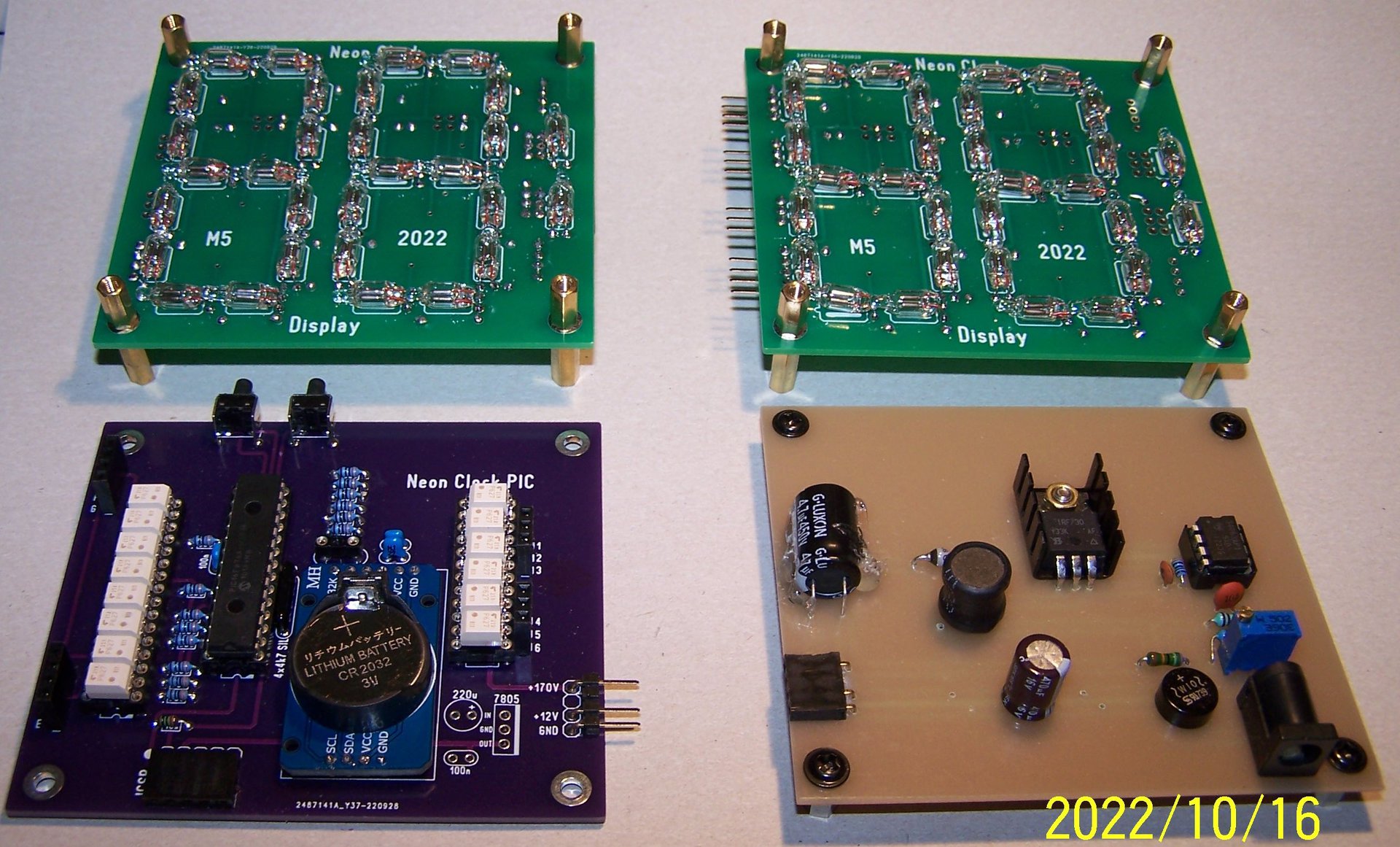 Kaqkk barátommal egy évvel ezelőtt kezdtük a Neon Clock fejlesztését. Én terveztem és építettem a hardvert, ő pedig a programot írta hozzá. Sajnos, a multiplex vezérléssel a sokadik próbálkozás után is gond volt. Ezért lemondtam róla és az összes addig elkészült panelt átadtam Kaqkk barátomnak, én pedig hozzákezdtem a v2.0 fejlesztéséhez.