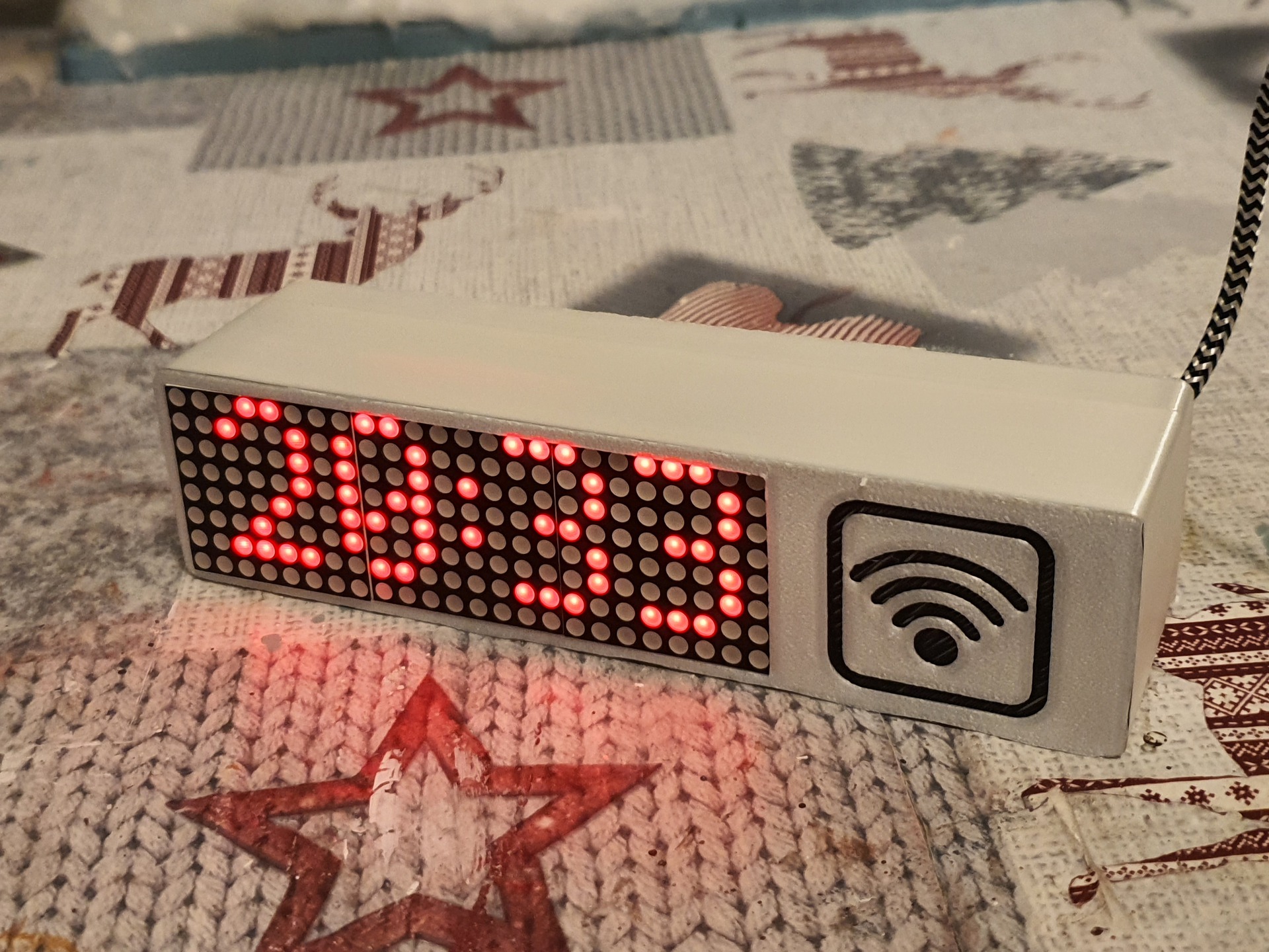 No én is összeraktam egy órát, mert kellett. Nagyon egyszerű. 3x8x8-as mátrix, ESP, 5 vezeték és 3d nyomtatott doboz. Az időt NTP-vel szinkronizálja wifin. Eredetileg 4x8x8-as mátrixot terveztem, de véletlen eltörtem az elsőt, így 3 ép maradt.