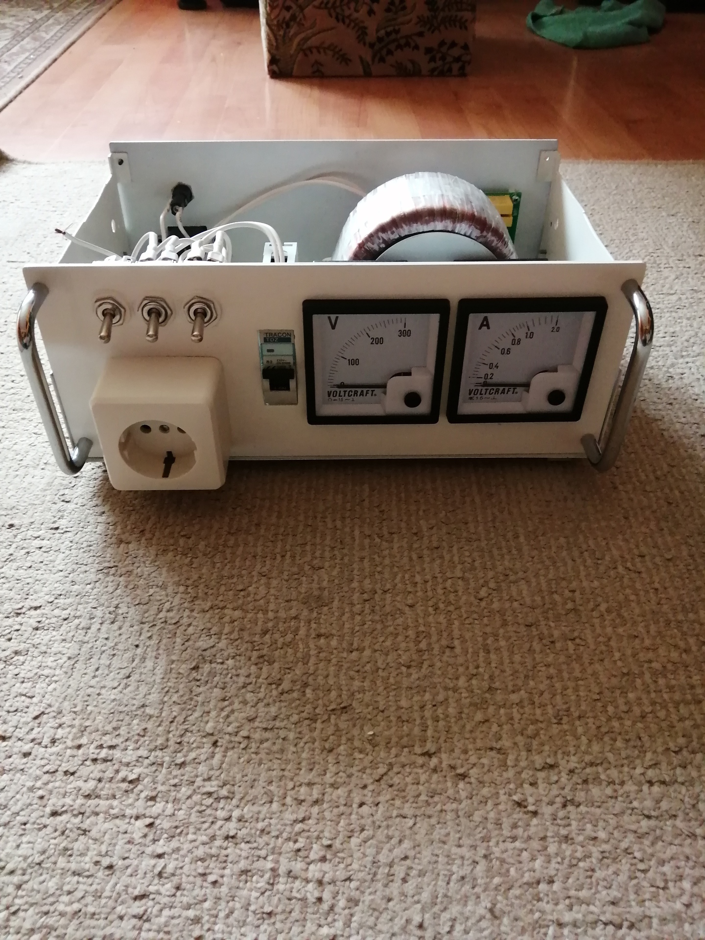 Szia! Én is azon gondolkodtam, amit Alkotó írt. Miért nem 230V-ot mutat a feszültségmérő? Nem 230/230V-os? Meg hol lesz a sorbakötött izzó? Belül? Nem látok neki csatlakozót/foglalatot, csak a betáp és a kimeneti csatit. A leválasztott/halózati átkapcsolót én is kihagynám, ahogy tufatofu írta. Egyébként szép munka, tetszetős dobozolás, kivitelezés!