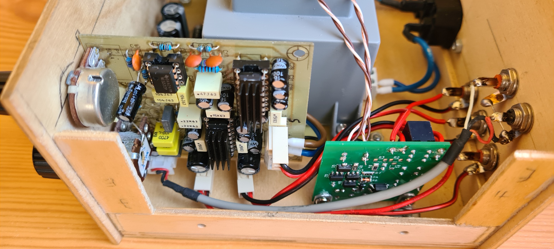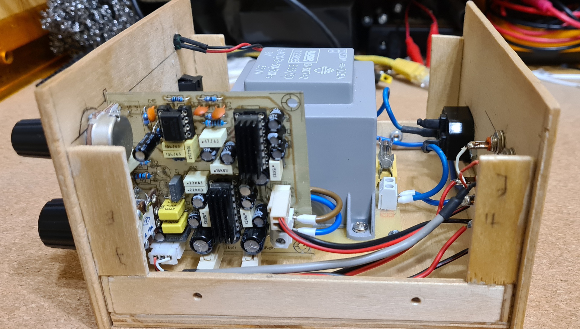 Végre sikerült befejeznem a TEA2025B-re épülő 2.1-es erősítőt, utólag kiegészítve egy reloop által tervezett kopp3-al. Az erősítő paneljét magam készítettem, a kopp3-hoz már csináltattam, mivel SMD alkatrészekkel készült. A doboz szintén saját készítés. A hozzászólás módosítva: Ápr 29, 2024