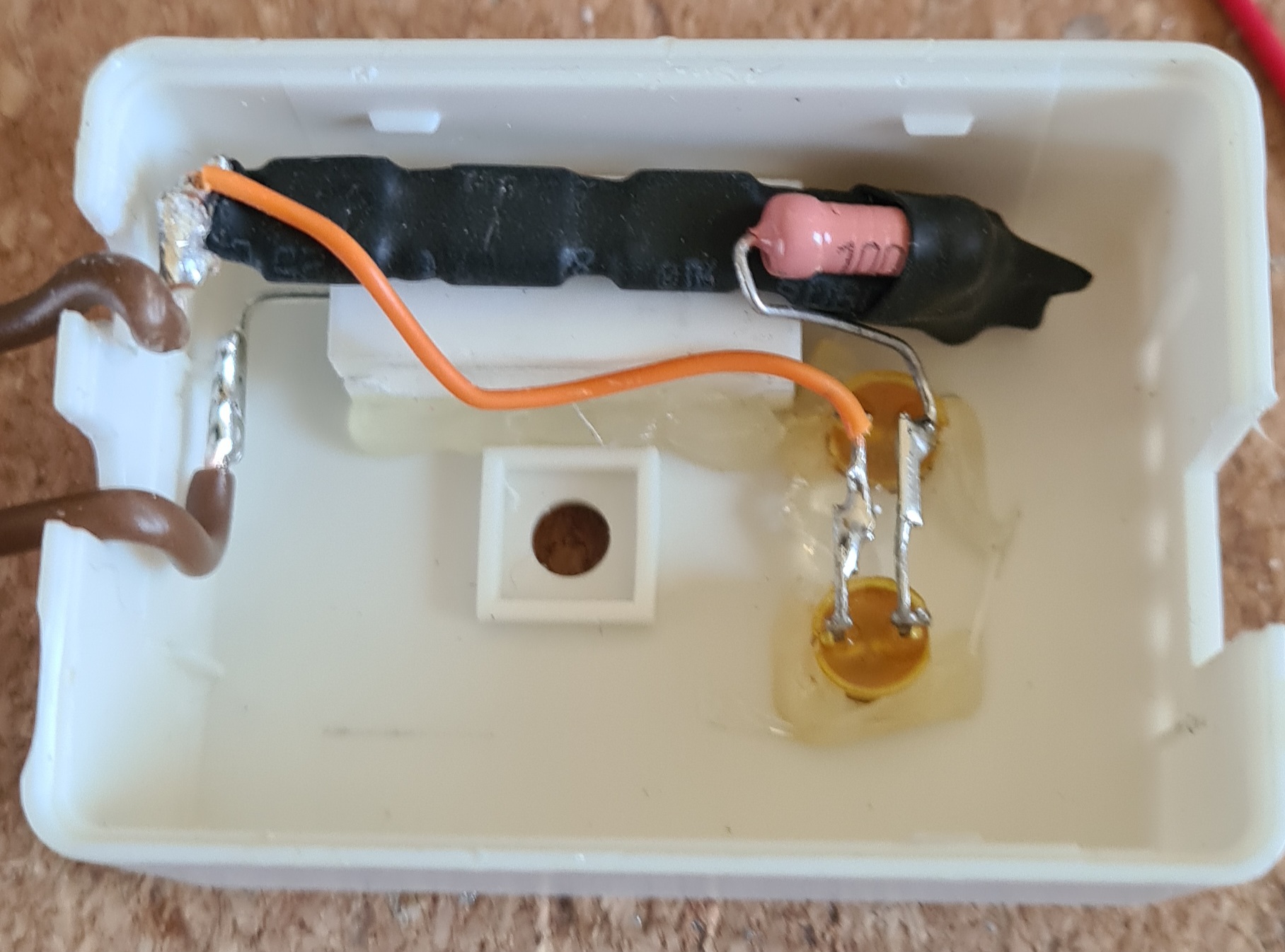 Elkészült egy újabb alkotás. Egy kondenzátor töltés kisütő. Próbáltam az itthon fellelhető alapanyagokat felhasználni. A háza pl. egy rossz RGB LED szalag vezérlő. Labortáppal próbáltam. Már 4,5V-tól jelez a LED.