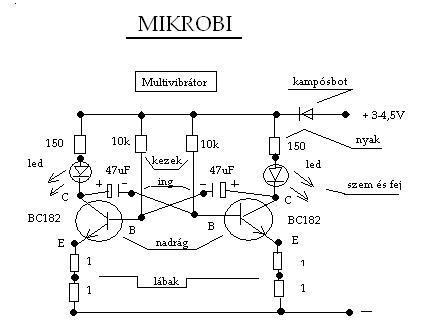 Láttam előbbre azt a robot,pálcika ember formát,gondoltam,felteszem én is az enyémet,amit sok éve egy agyilag "nyugodt" állapotban készítettem. Megkövezni nem illik! :violent: csak agyonlőni!Valójában ez egy működő áramkör. :beka3: