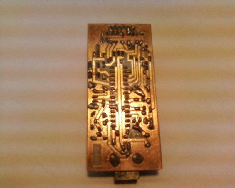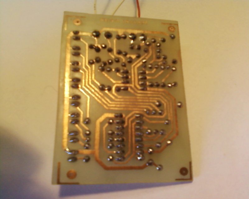 Nekem az első kb ugyan ijen volt, de szerintem 12V-os tápot akartál írni, lényeg, hogy én csak bátorítani tudlak, jó lesz az, csak így tovább, esetleg próbáld meg a vasalós megoldát mint nyák készítés.