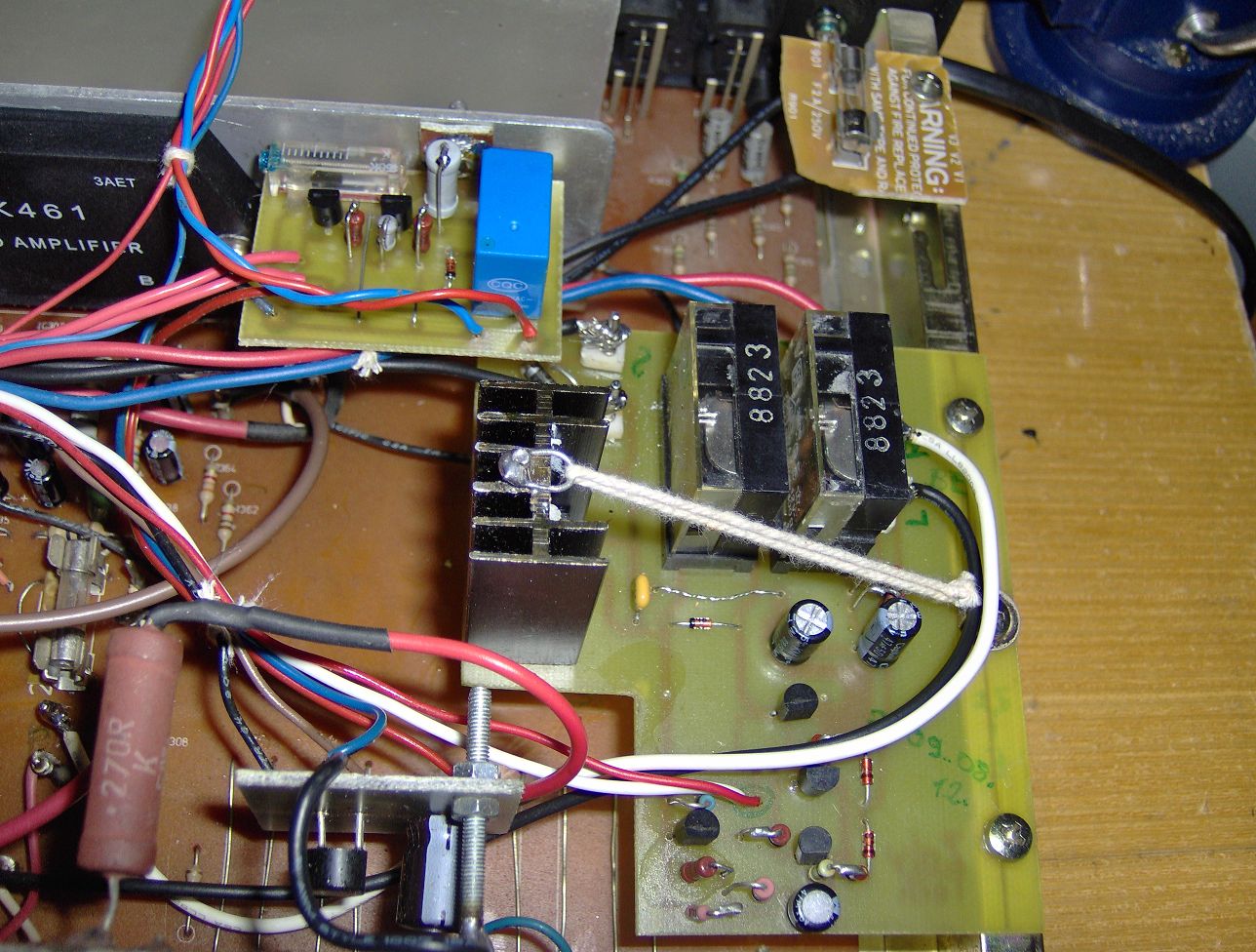 Én egy erősítőbe építettem védelmeket. Igaz hogy STk461 a végfoka, de hihetetlenül jó a hangja! Építettem bele egy hangszóró védelmet, és egy ventilátoros hővédelmet. A zöld LED azt jelzi hogy ha a védelem "be van húzva". A piros LED azt jelenti ha működik a hűtés. Elég sok kábel lett benne. De össze lett kötözgetve, így nagyjából rendezett. A kivezérlés jelző mögé 10mm-es fehér LED-eket tettem, 4 Db ot. Így nagyon szépen néz ki! Üdv!