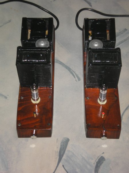 Itt egy PCL 86-os csőre épített monoblokk van a mellékleten. Ut=300V tápfeszes előfeszítéssel, a meghajtó rész előfeszítése kondival részben át van blokkolva. A kimenőtrafója a régi tévék szilíciumos EI66-os trafóinak a magja, az E rész összeforgatásával. Monoblokként elég szépen szól, bár nem fogja soha behozni a GU50-et vagy a 300 B-t. De a 6L6 orosz változata hang karakterben nem szerepelt szebben. De leszögezem. elhagyja a b osztájú és ab osztájú ic-és erősítőket. (Kulcsszavak:-vezérlő jel asszimetria-hőmérséklet stabilitás-fázis hurok stabilitás-felharmónikusok mozgása az alapjelen-) A doboza egy régi TV kávájából és egy rossz, 45 éves ágy merevítő lécéből készült.
