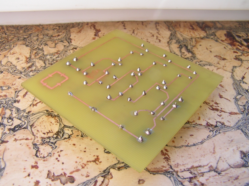 Egyáltalán nem néz ki rosszul! Sőt! tehát ha jól értem egyszerűen felvasaltad magára a hordozó anyagra, tehát ott nem volt réz, nem maratva lett. Aztán leoldottad és kész
